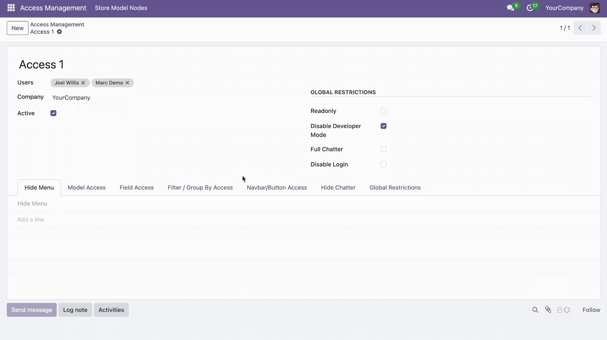 Do you want to simplify your work environment in an organization with access rights? Then this module improves your work efficiency with Instant Access, a powerful tool that simplifies tasks. Customize who can access essential parts of your work, like Menu, Field, Navbar Button, Chatter, Report Action, and Multiaction Views. With a focus on honesty, Instant Access ensures everyone has the right permissions for their work. This access management system simplifies work processes and helps everyone collaborate better.