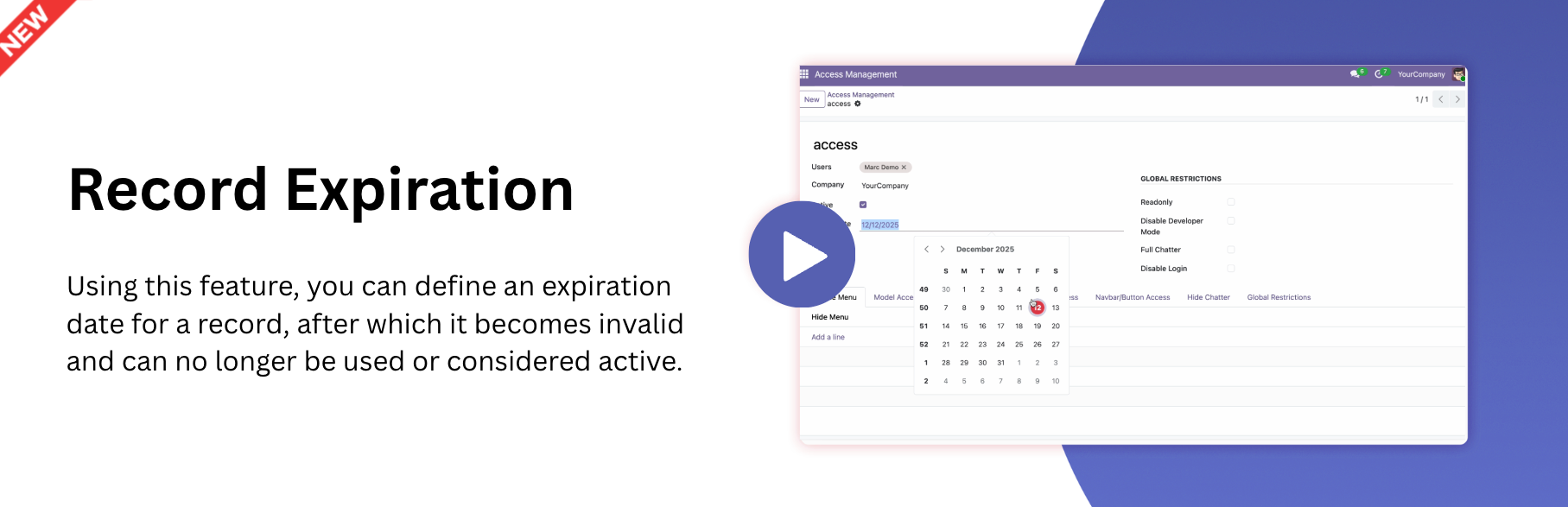 Added Restricts Access To Actions & Their Features Globally, Including Hiding New, Delete, Duplicate, Archive, Unarchive Options.