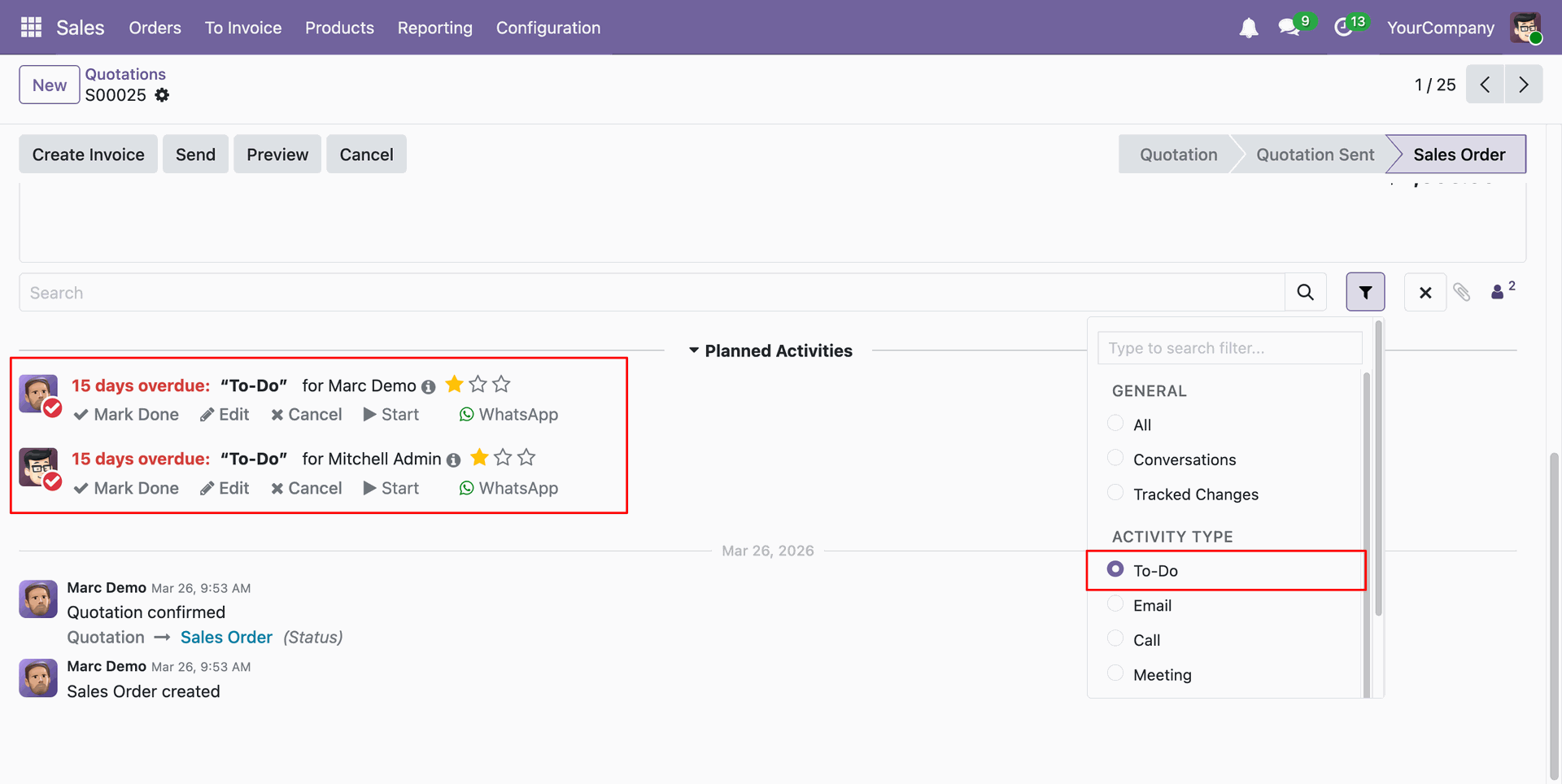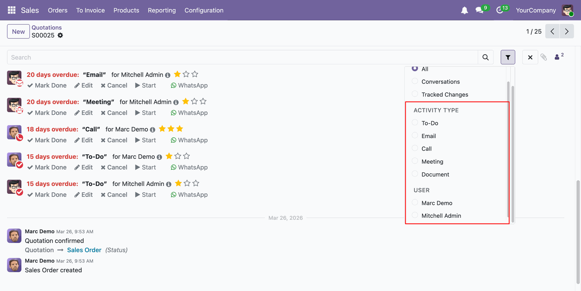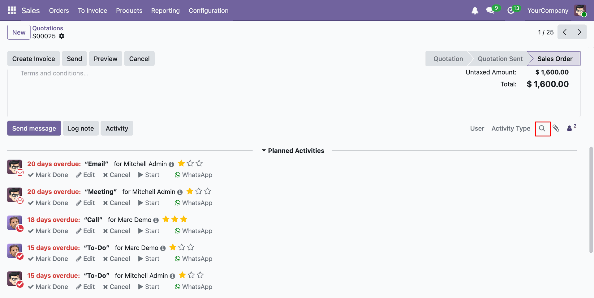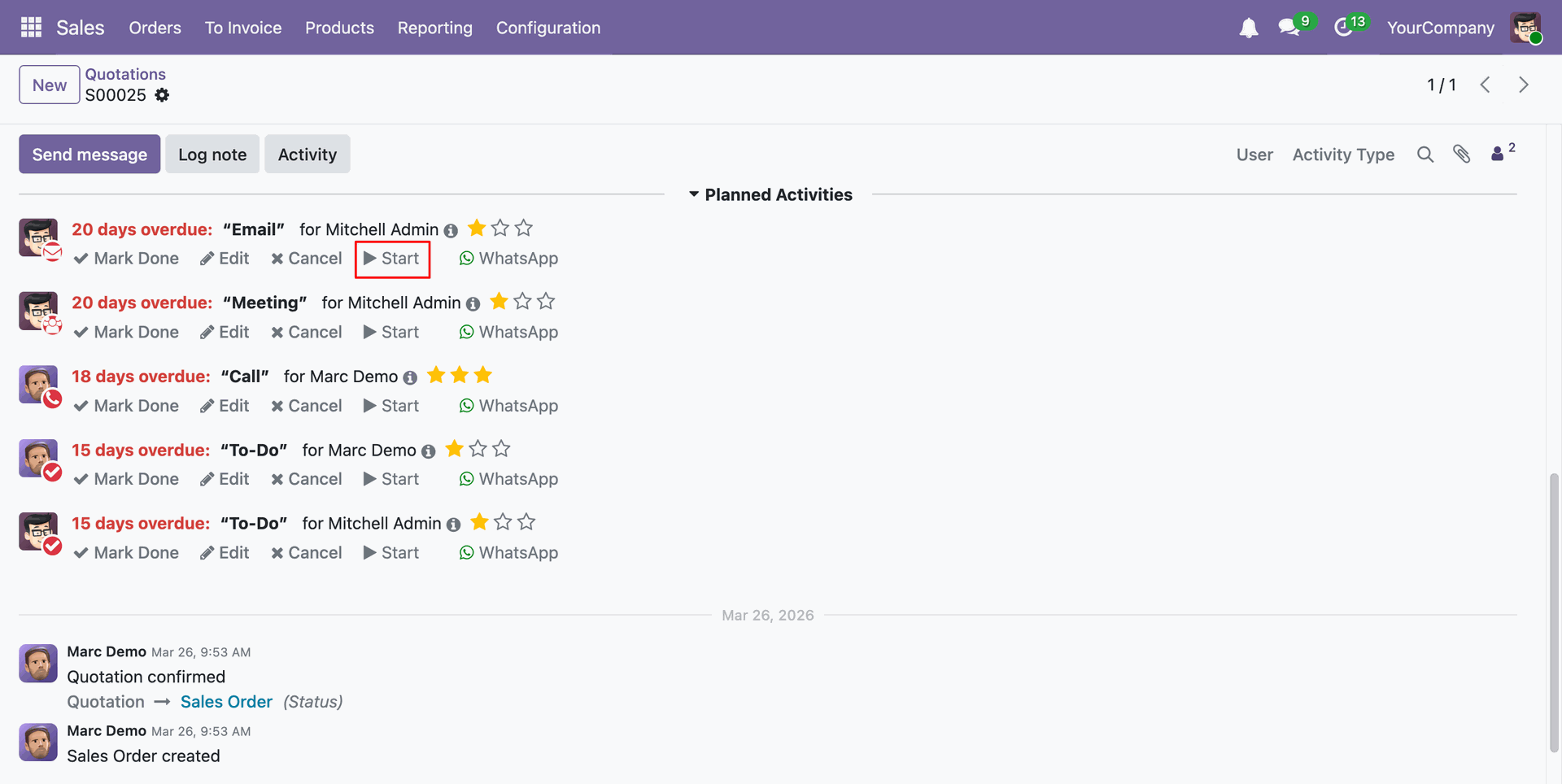 - Easy to set a schedule to notify a salesperson before and after the due date of the activity.