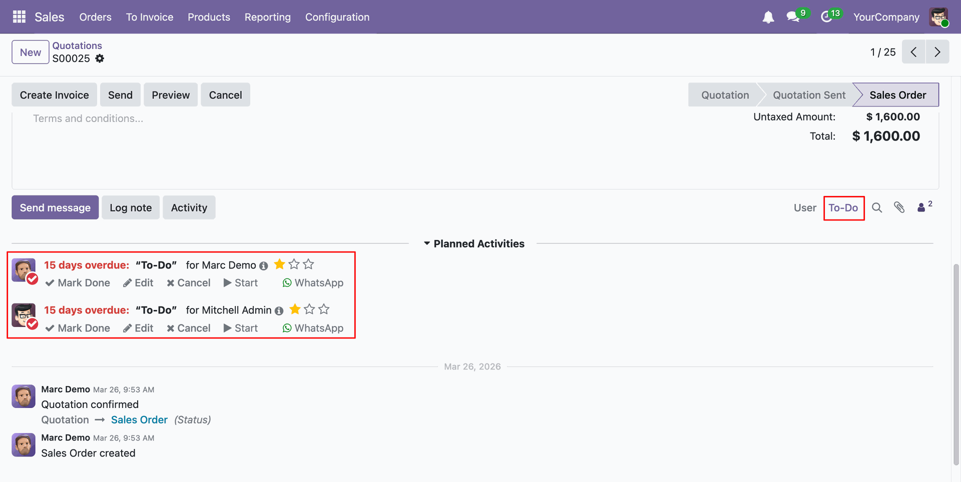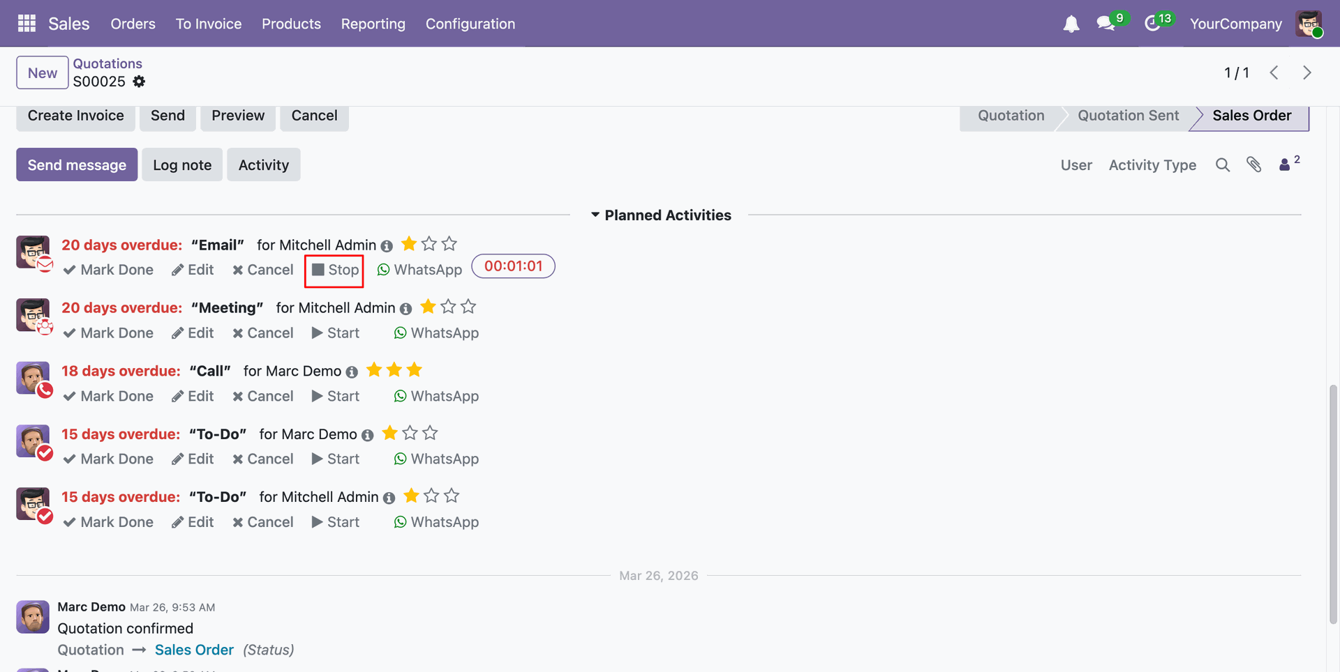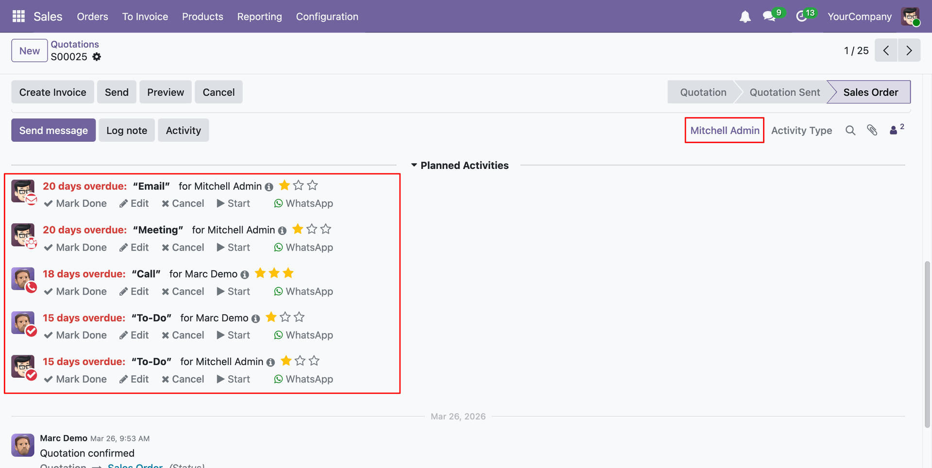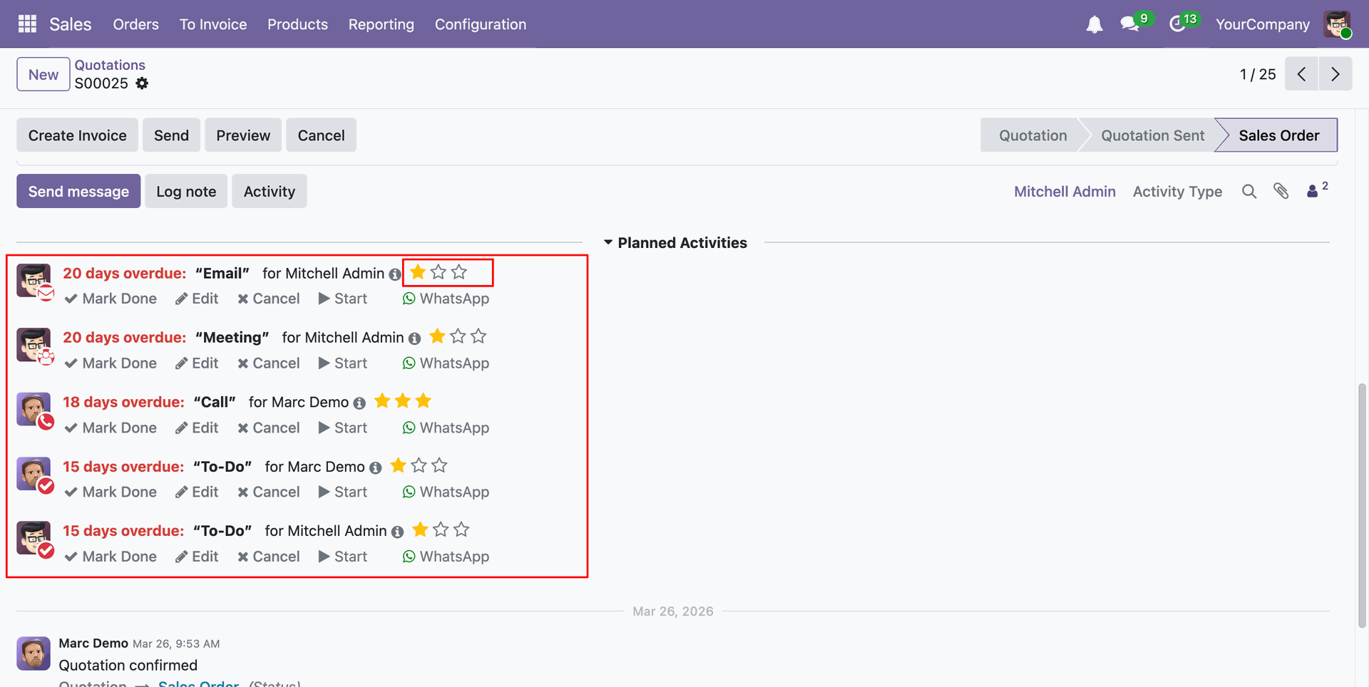 - Easy to set a schedule to notify a salesperson before and after the due date of the activity.