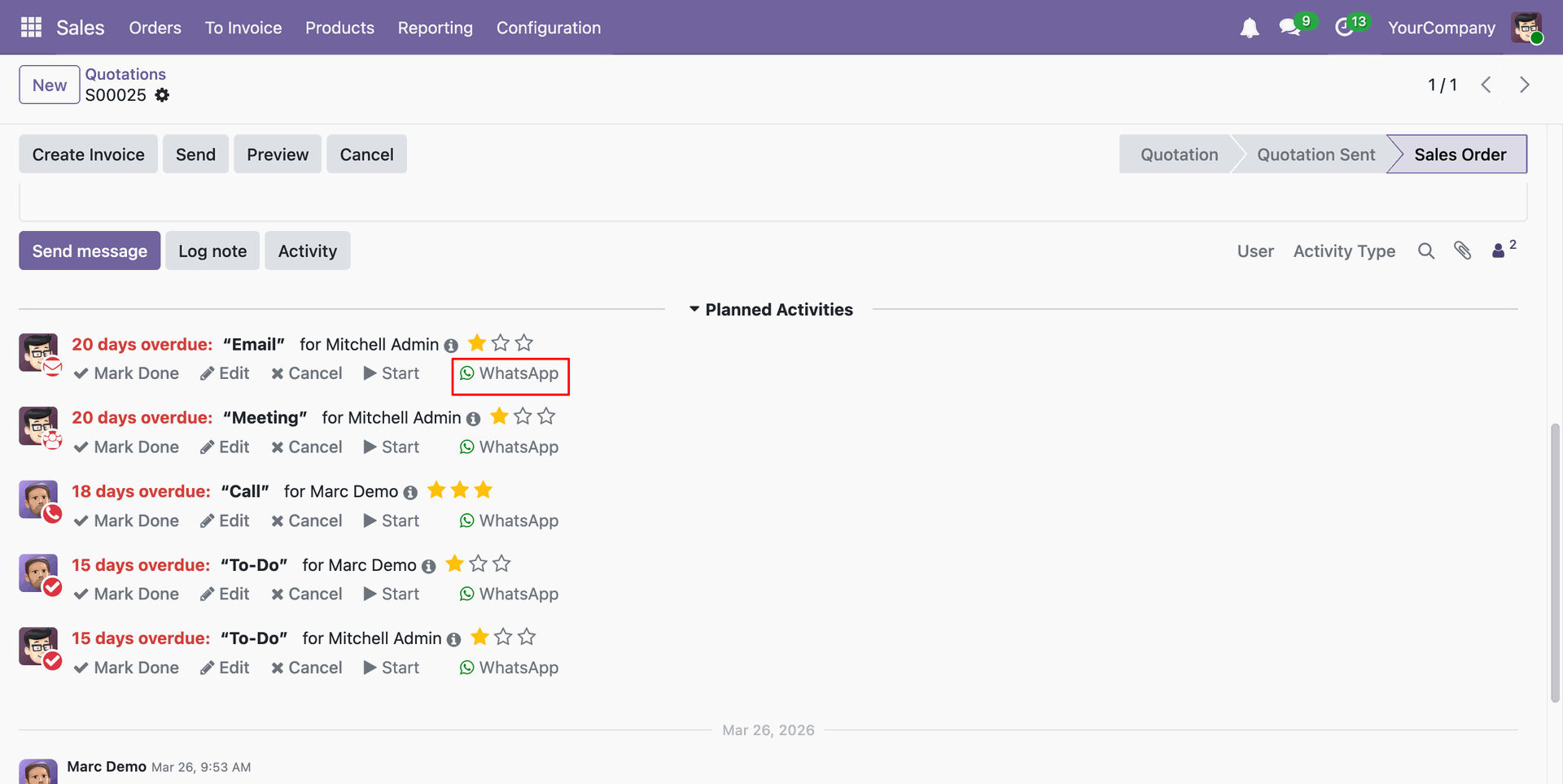 Activity Type & User Filter, Activity Details, Start, Stop & WhatsApp Send - All From