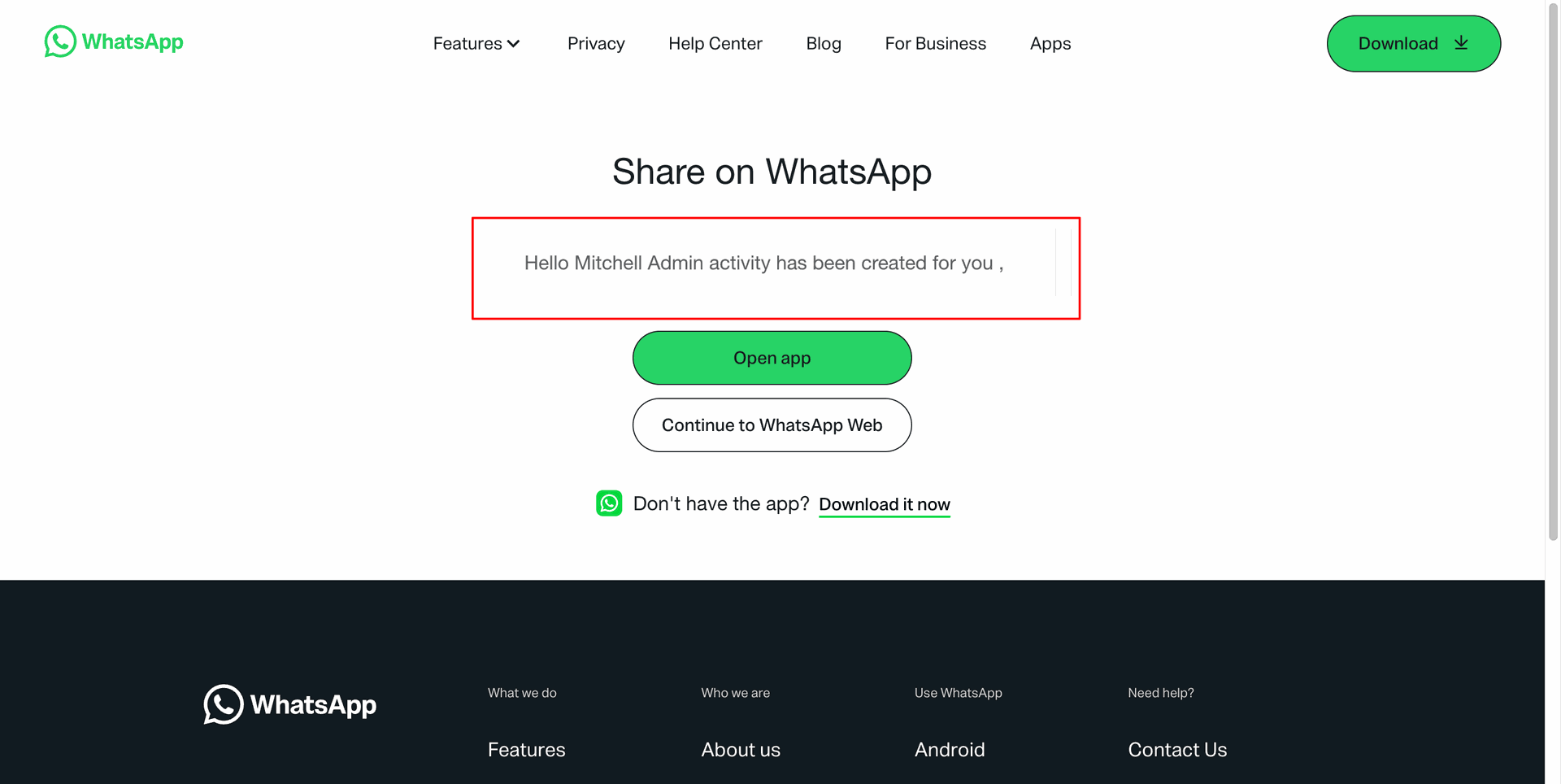 Click on the 'Whatsapp' icon to share the activity via whatsapp.