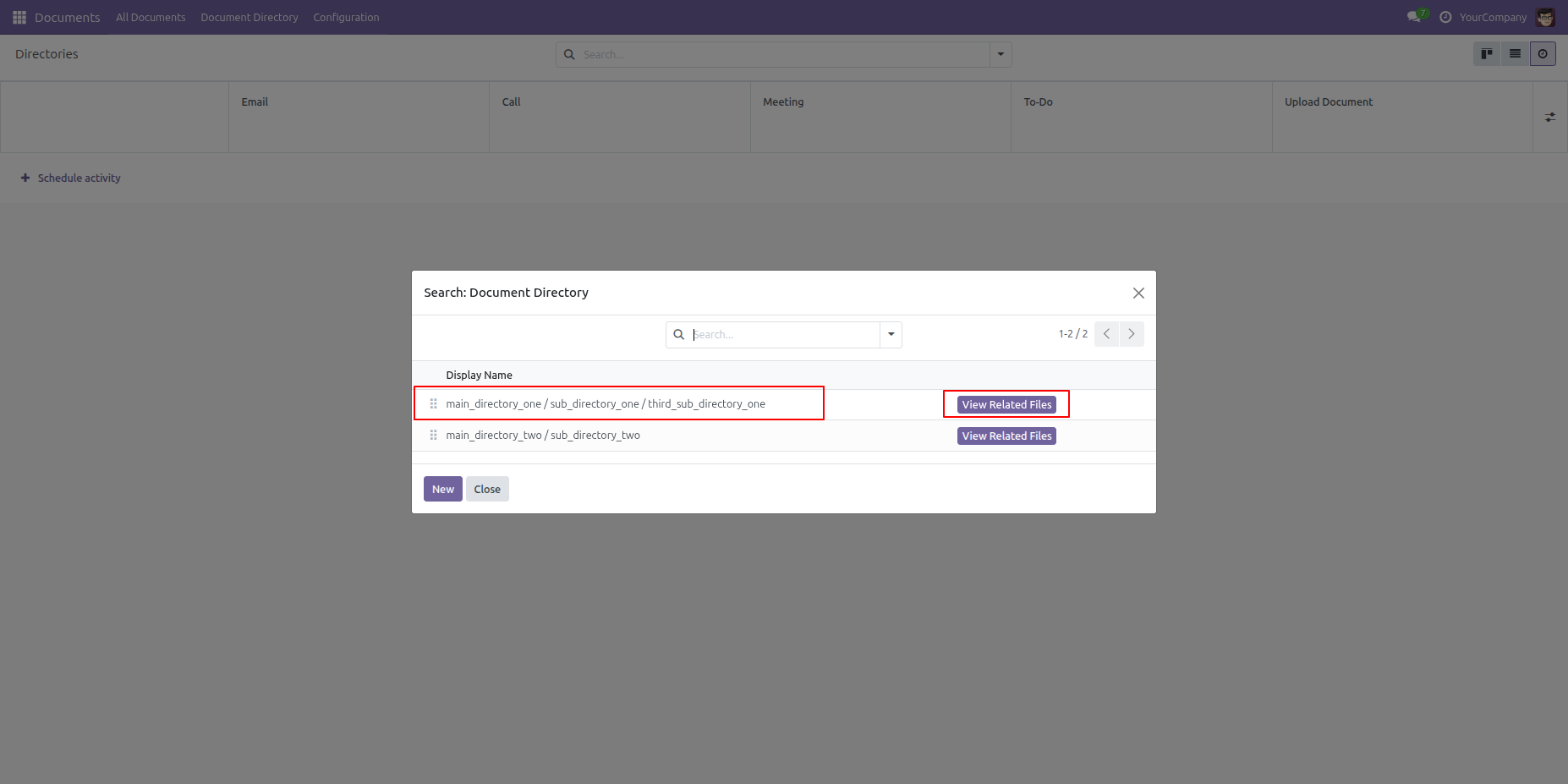 In 'Document Directories' go to the directory, you can create a directory here. Using files & sub-directory users can see details of particular documents. Search bar used for search directory.