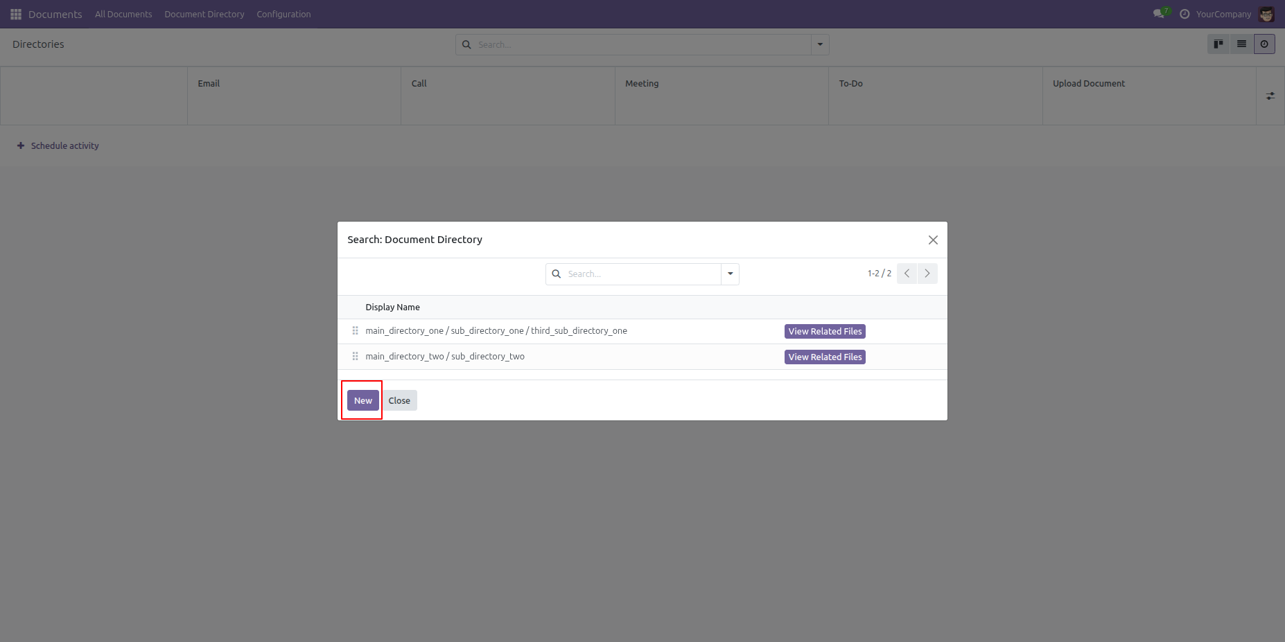 To create a new directory, click the "New" button in the "Search: Document Directory" wizard.
