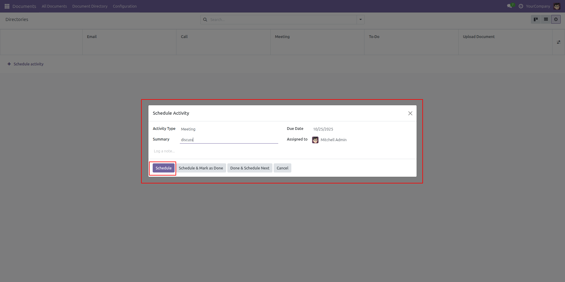 Generate a new directory directly from scheduled activity actions without navigating away.