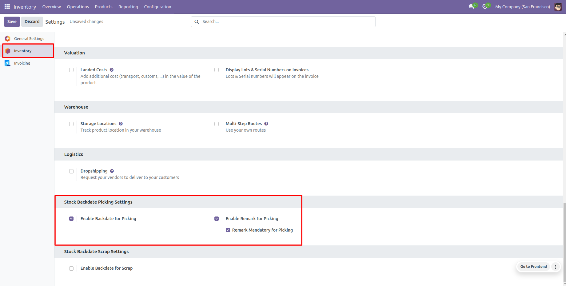 - Backdate and remarks transfer to the stock moves, product moves & stock valuation.