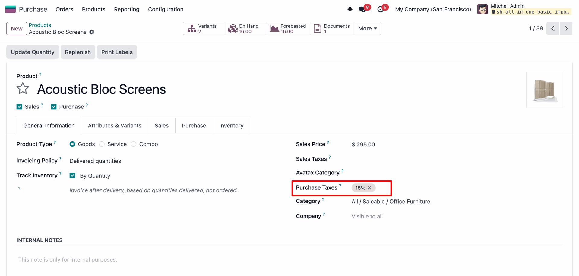 Here, we have applied a 15% tax to the 'Acoustic Bloc Screens' product.