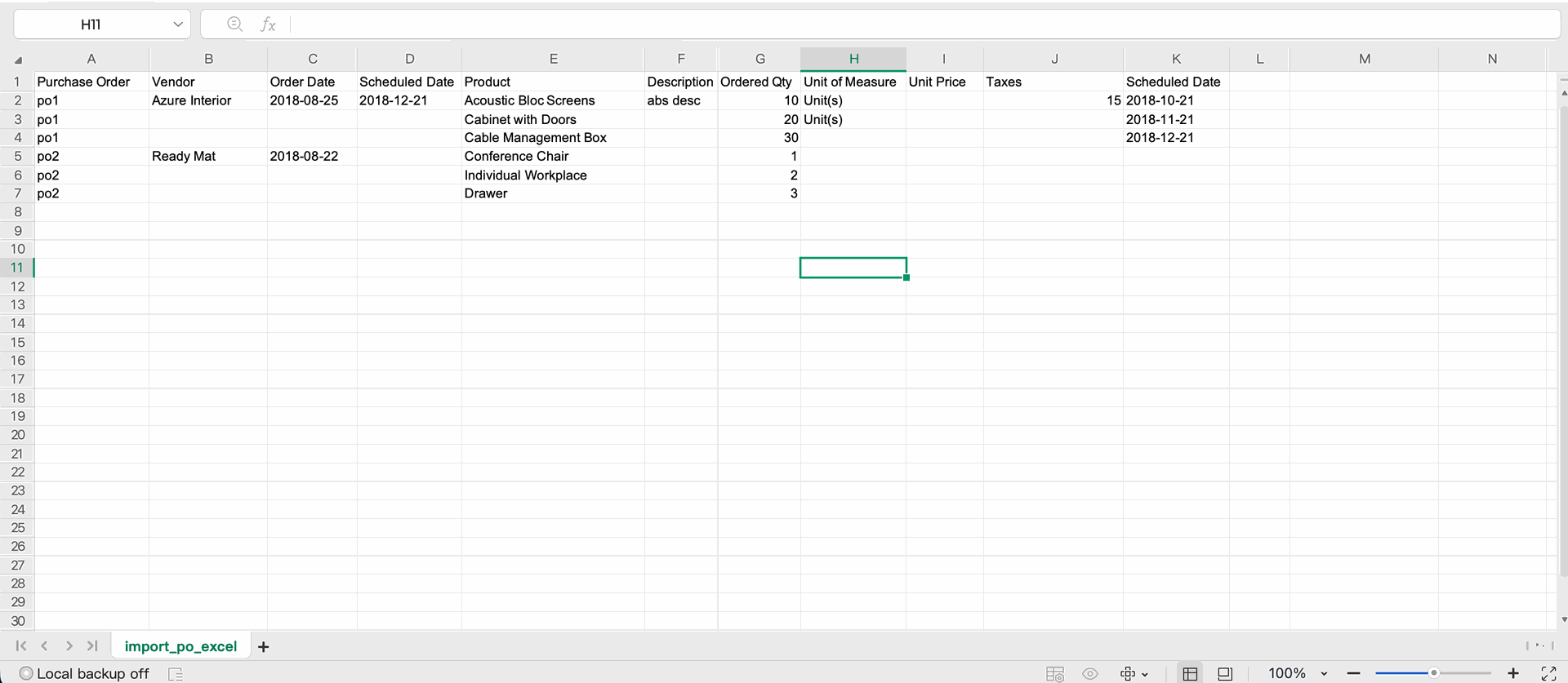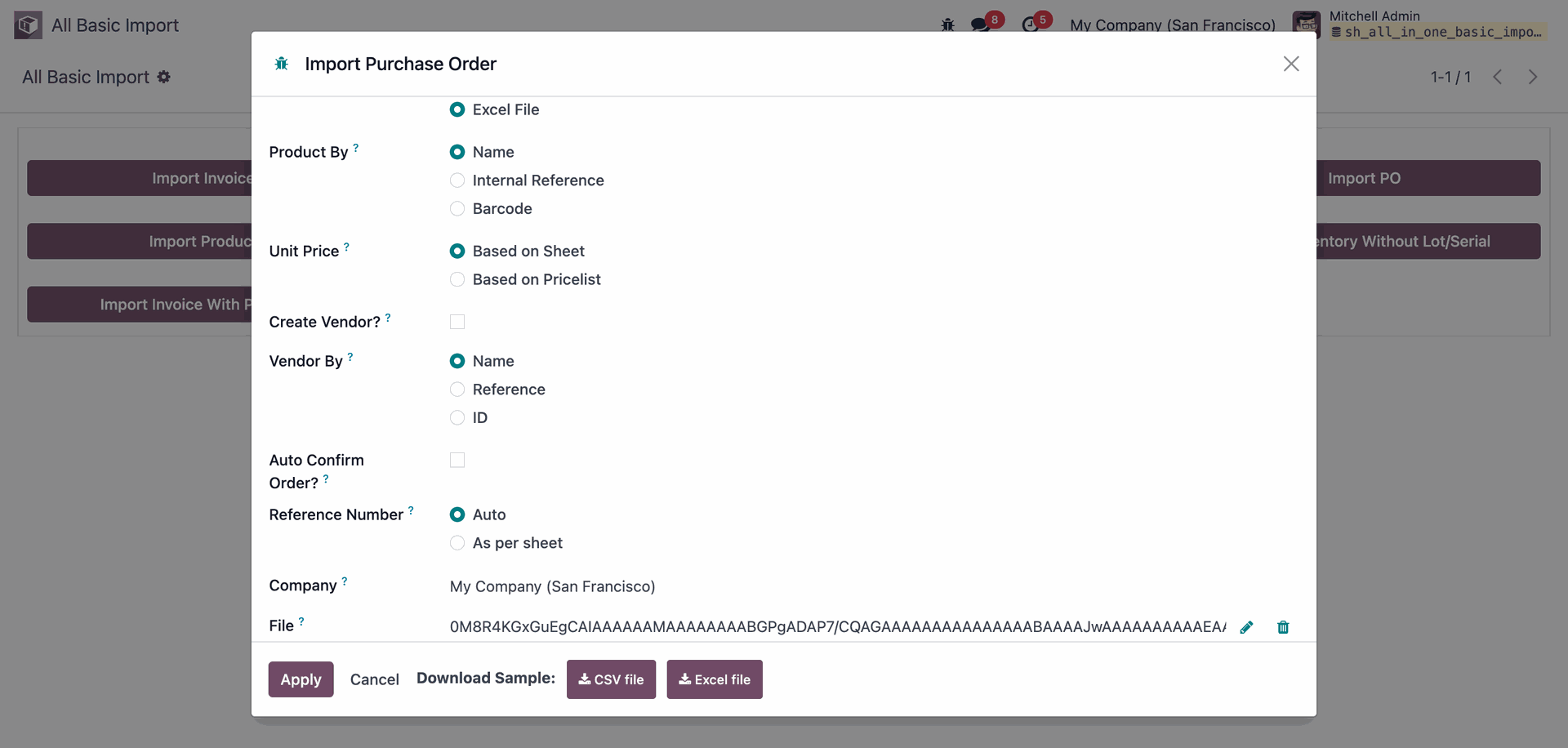 When you click "Import Purchase Order" menu, wizard will open that looks like below