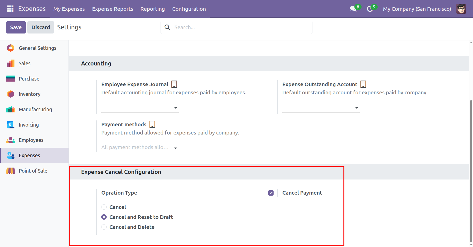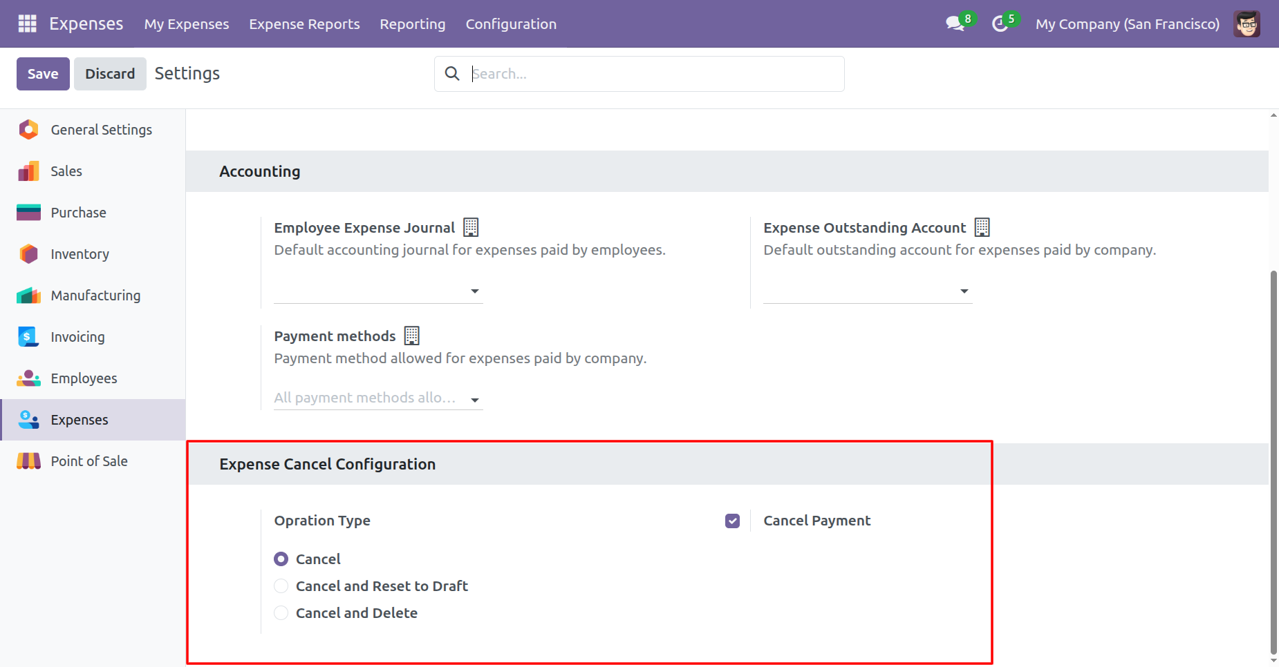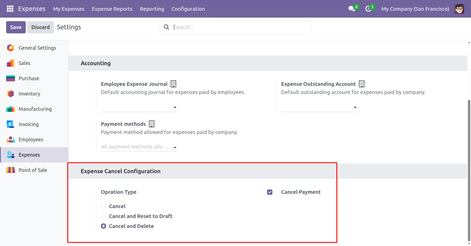When you want to Cancel & Delete a expense then choose the 'Cancel And Delete' option.