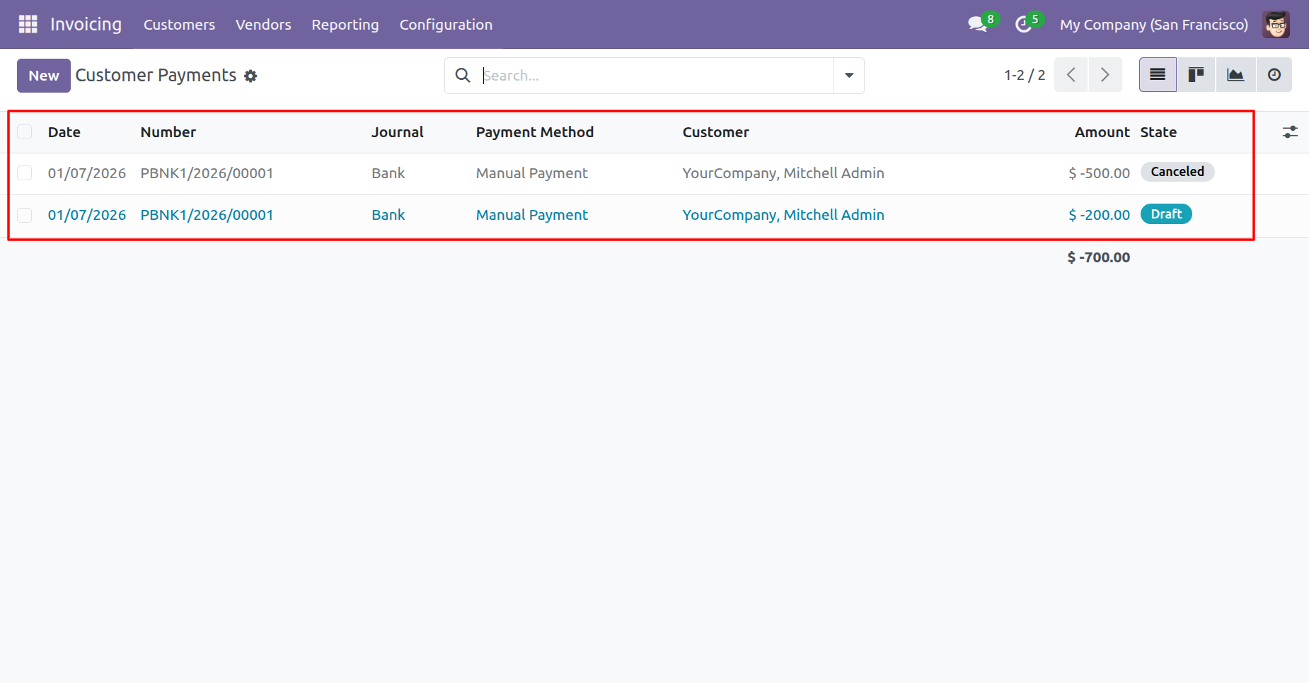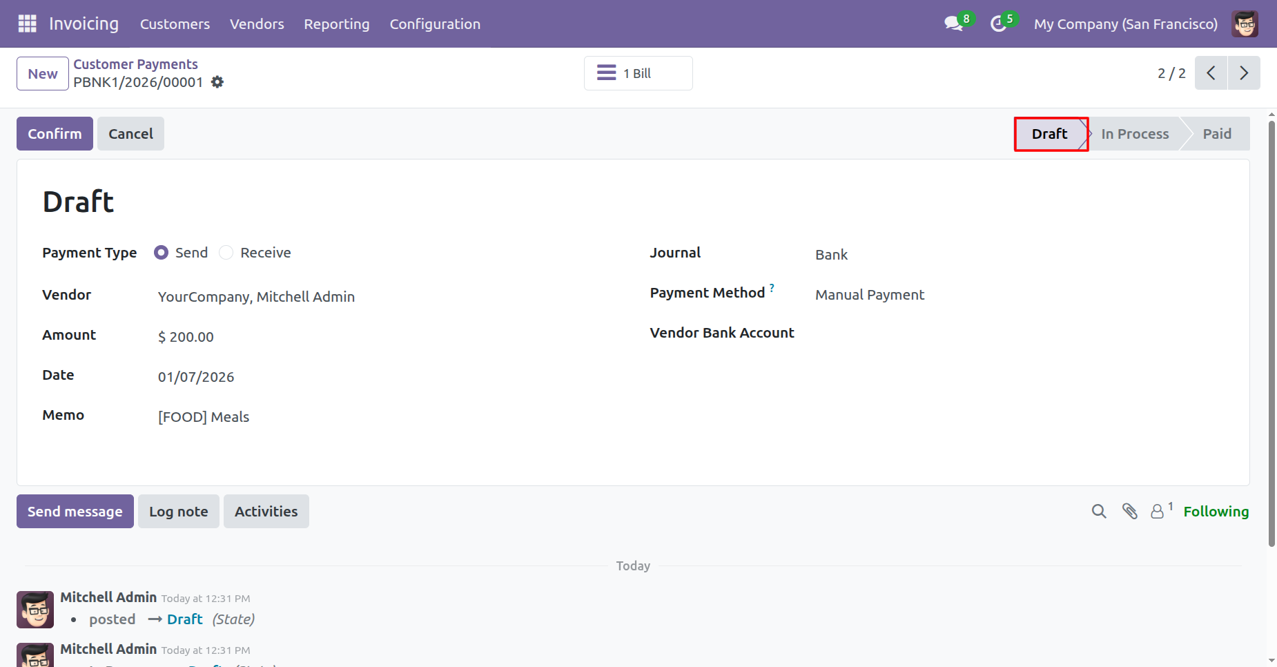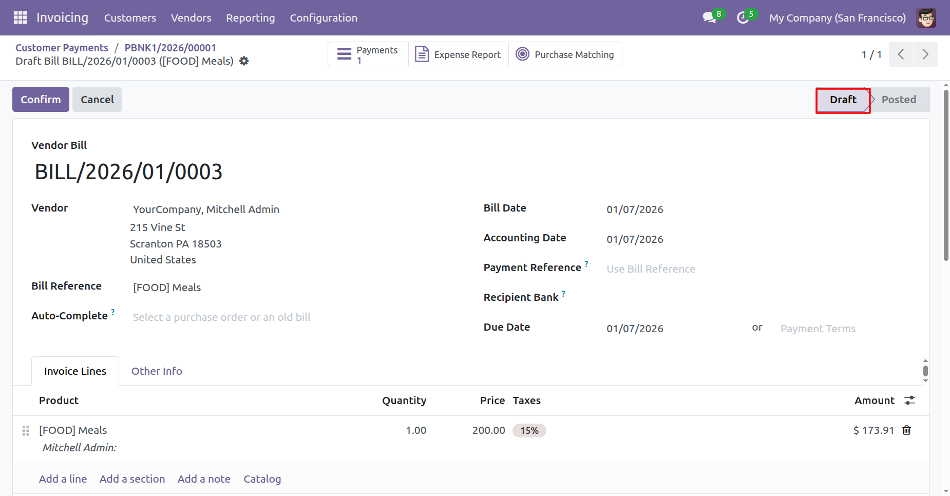 Our invoice is in the draft state.