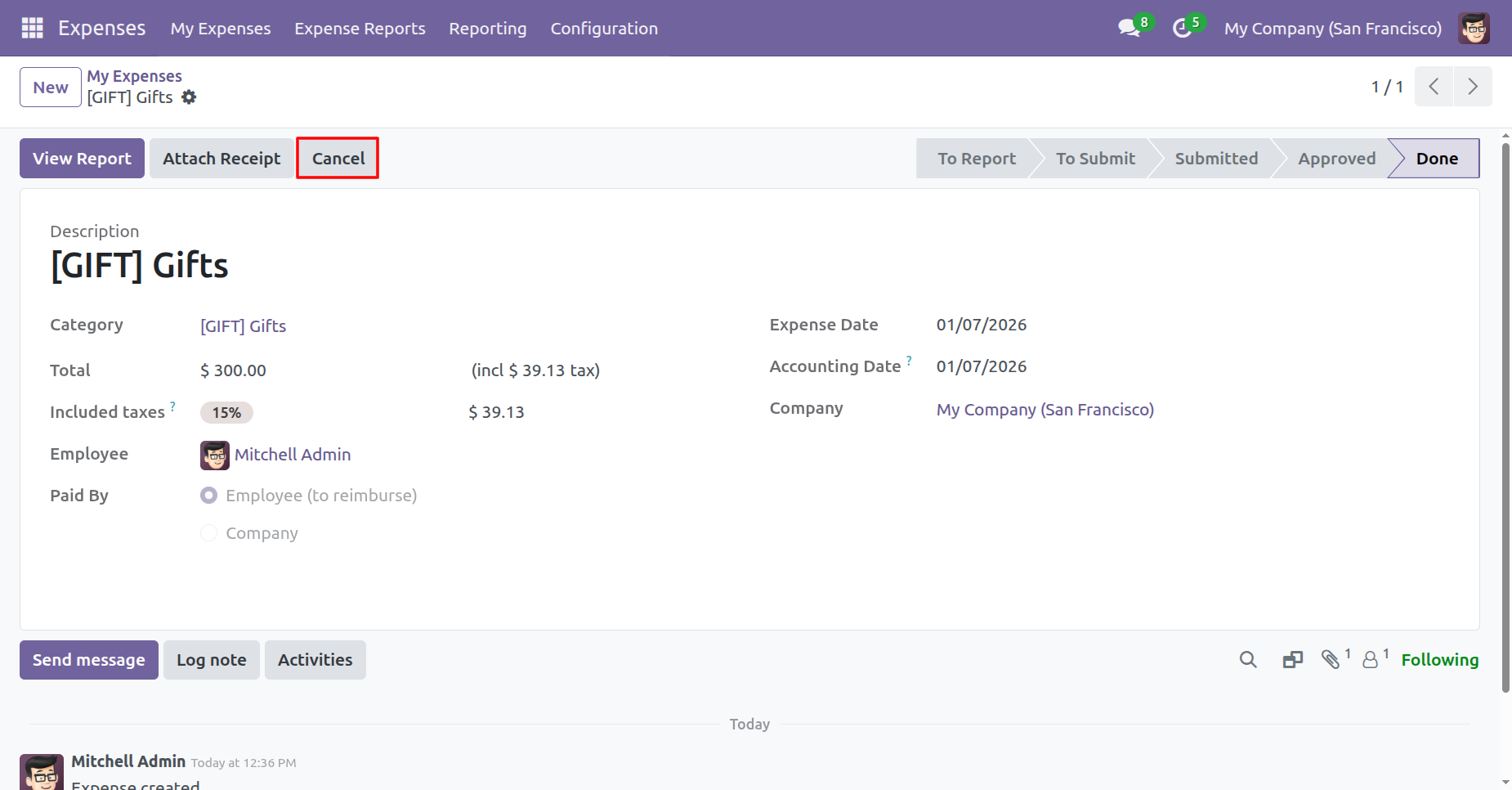 After the 'Cancel' the expense our expense will be deleted.