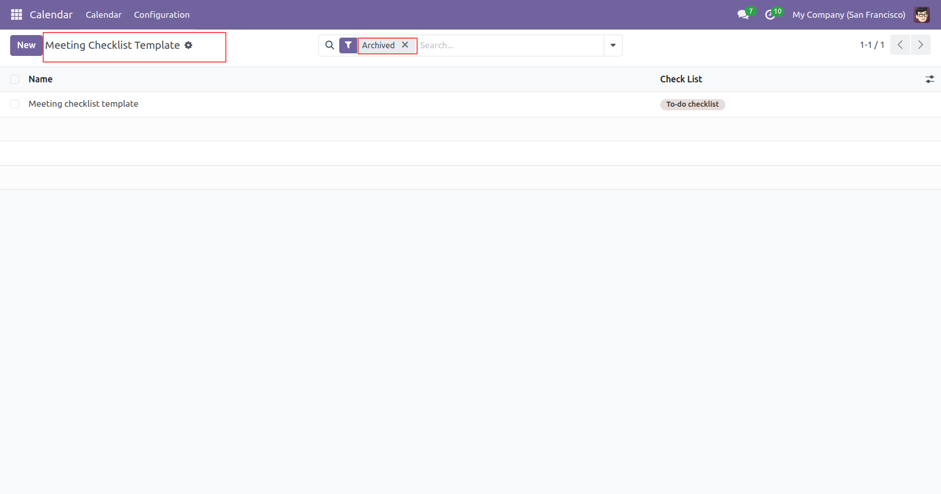 You can filter the meeting checklist templates using the 'Archive' filter option.