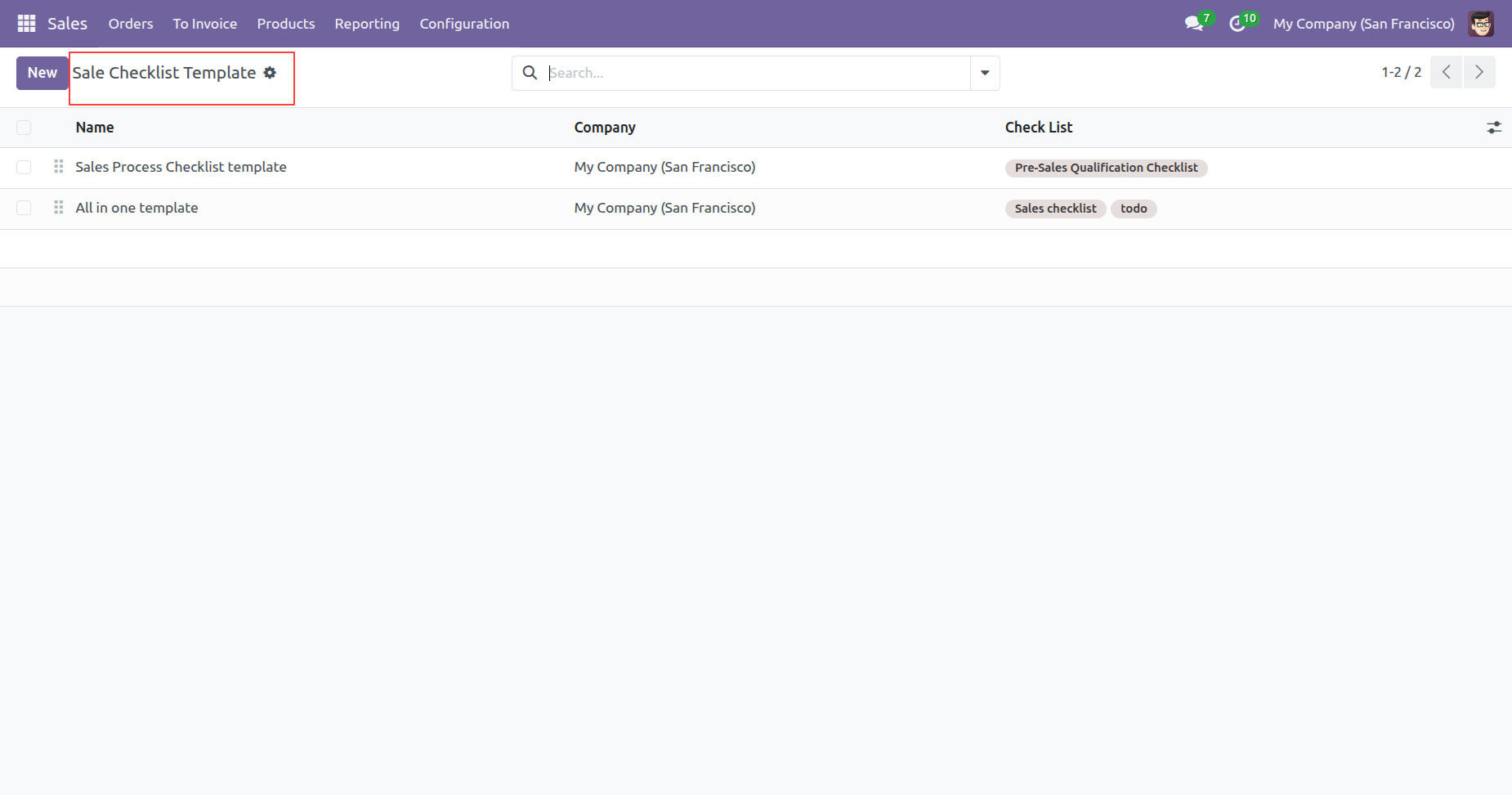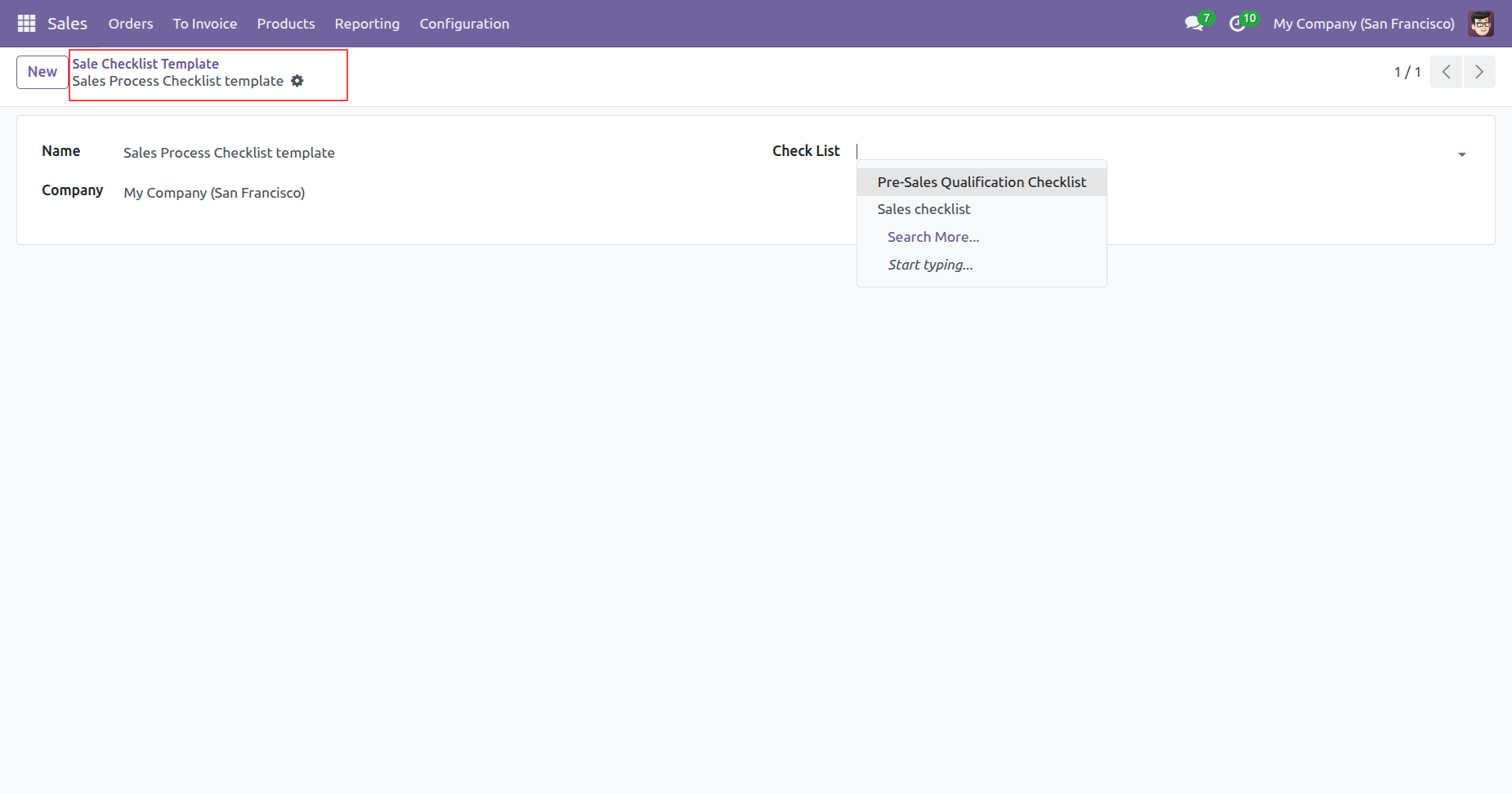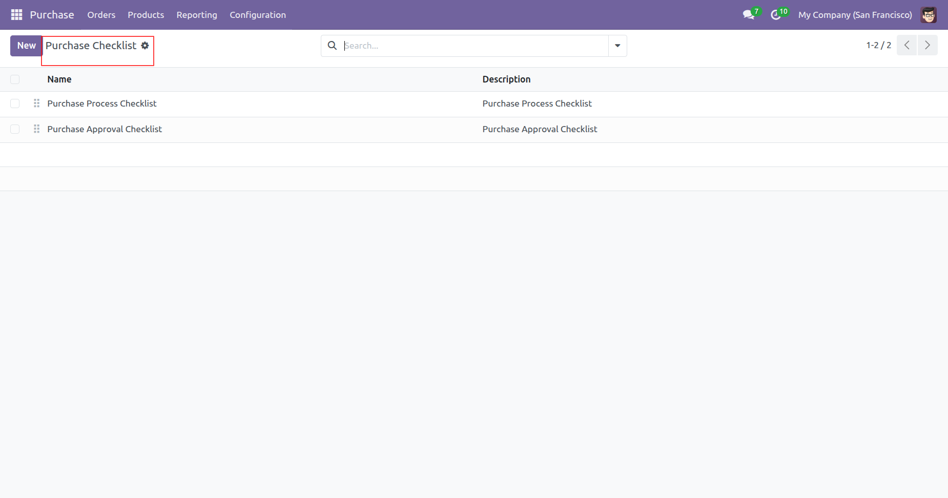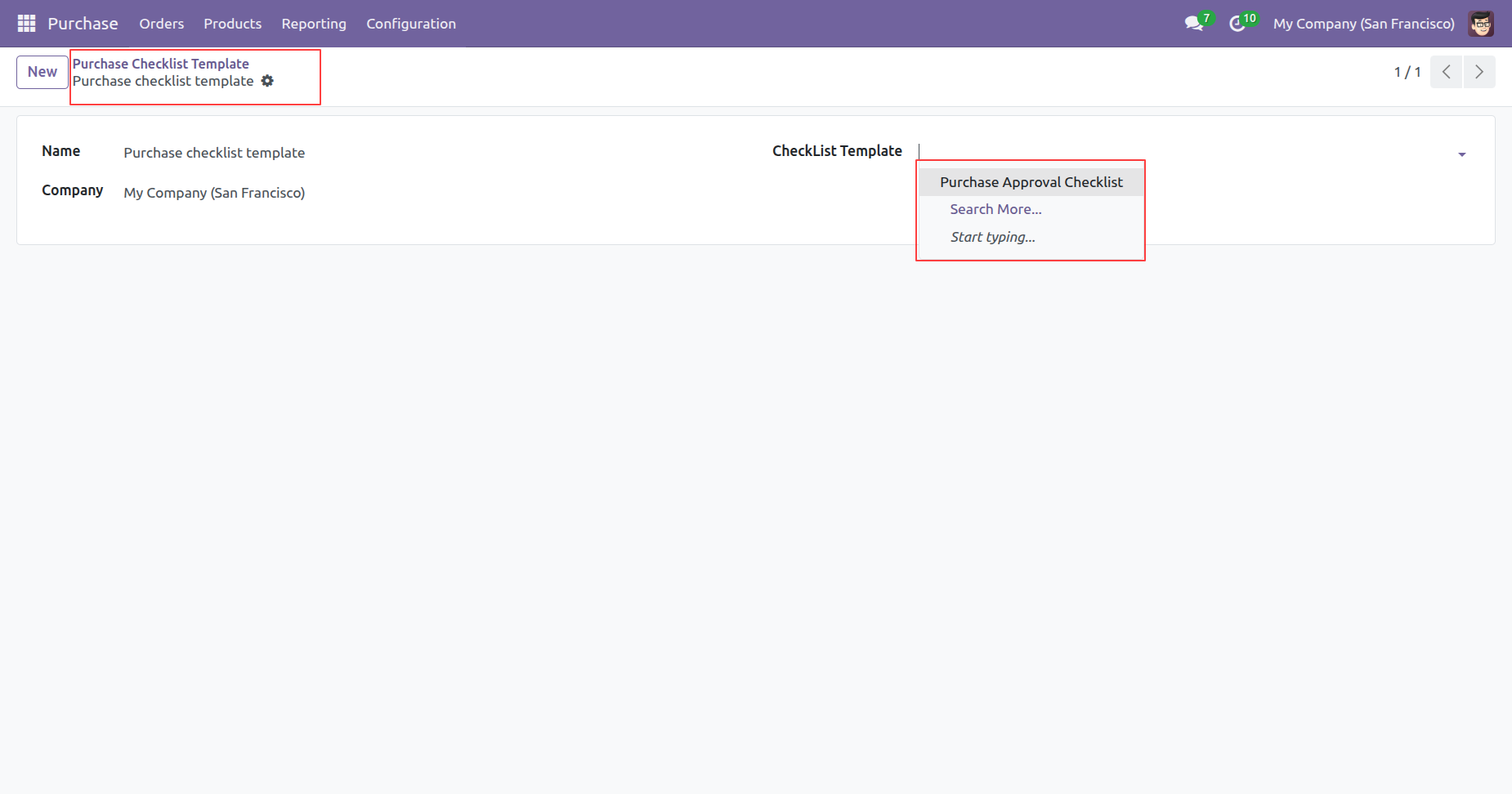Now we create a purchase checklist template, checklist template form view looks like this.