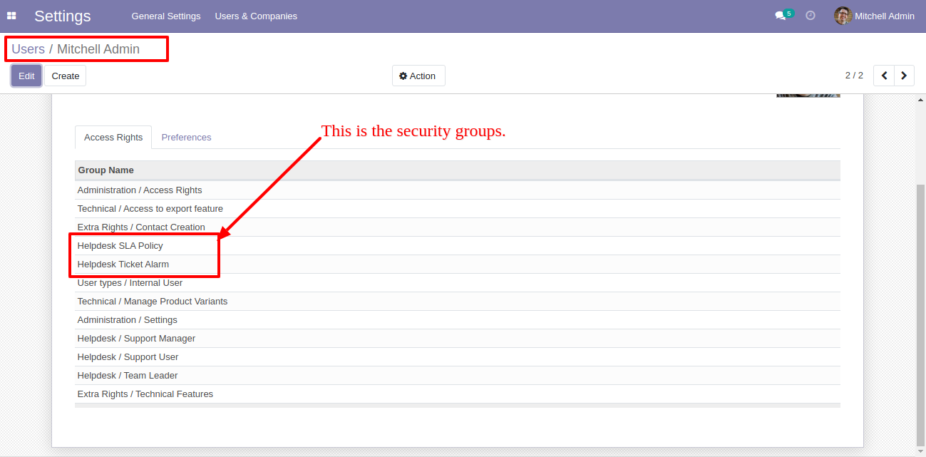 Helpdesk SLA Policy & Helpdesk Ticket Reminder security groups.