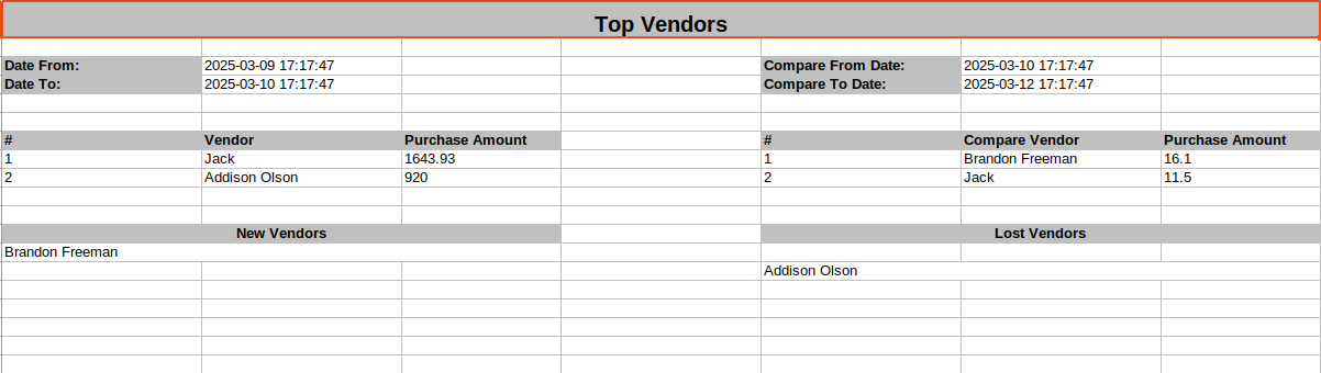 Now we can see the "Vendor Purchase Analysis" report view based on purchase order.