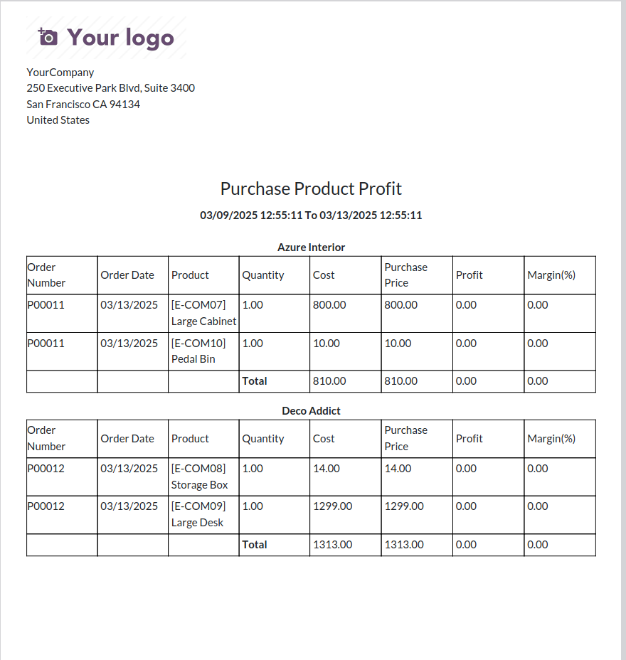 Purchase product profit PDF/Excel report wizard, we print the report based on both (vendor and products).