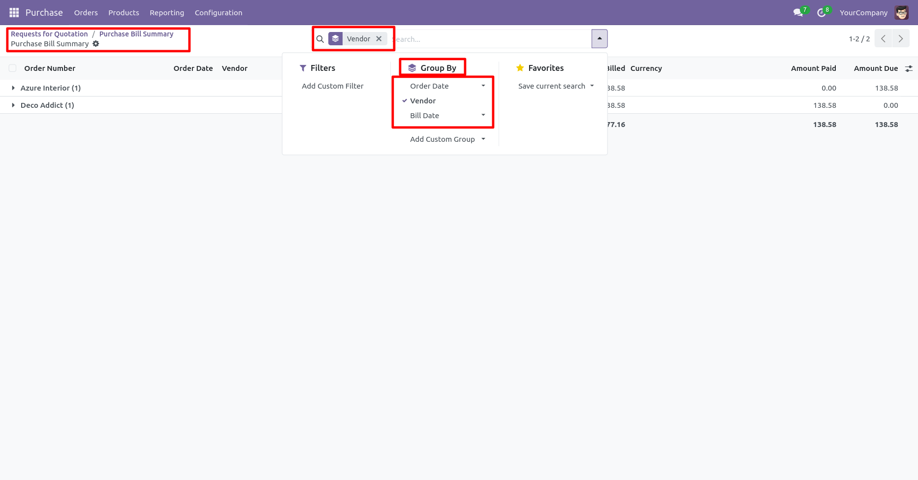 Now we can see the "Vendor Purchase Analysis" report view based on Product.