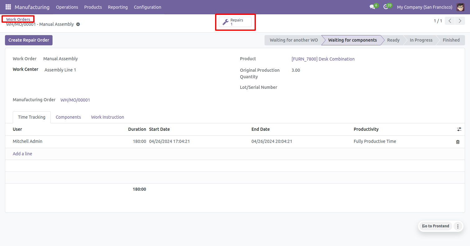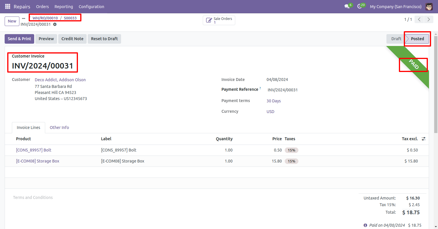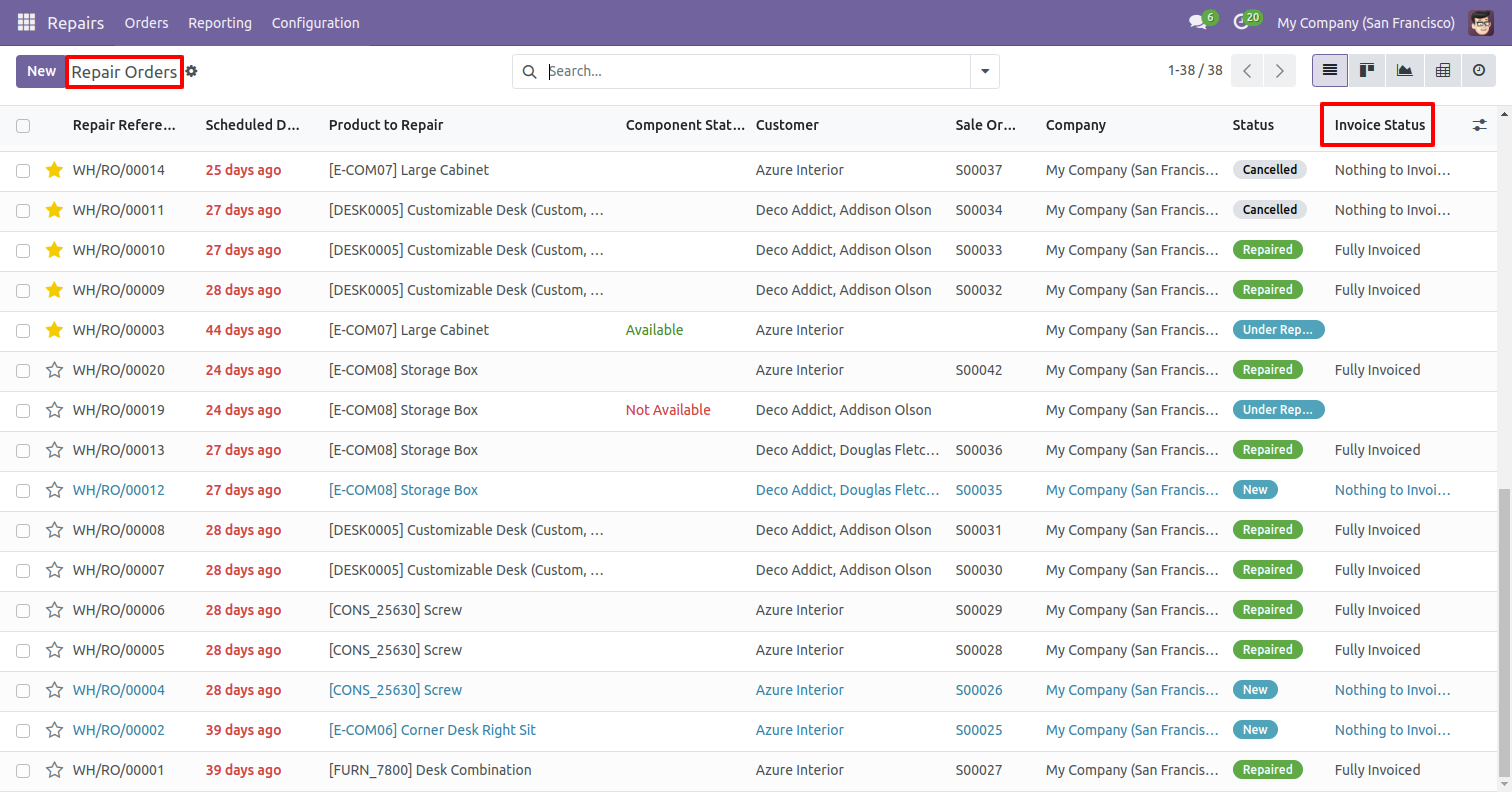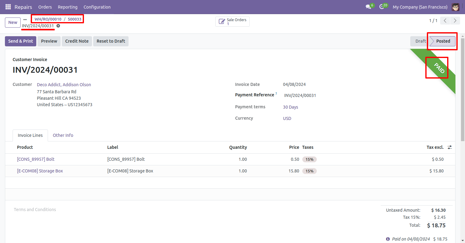 Click on the 'Repair Order' smart button to view the related Repair orders.
