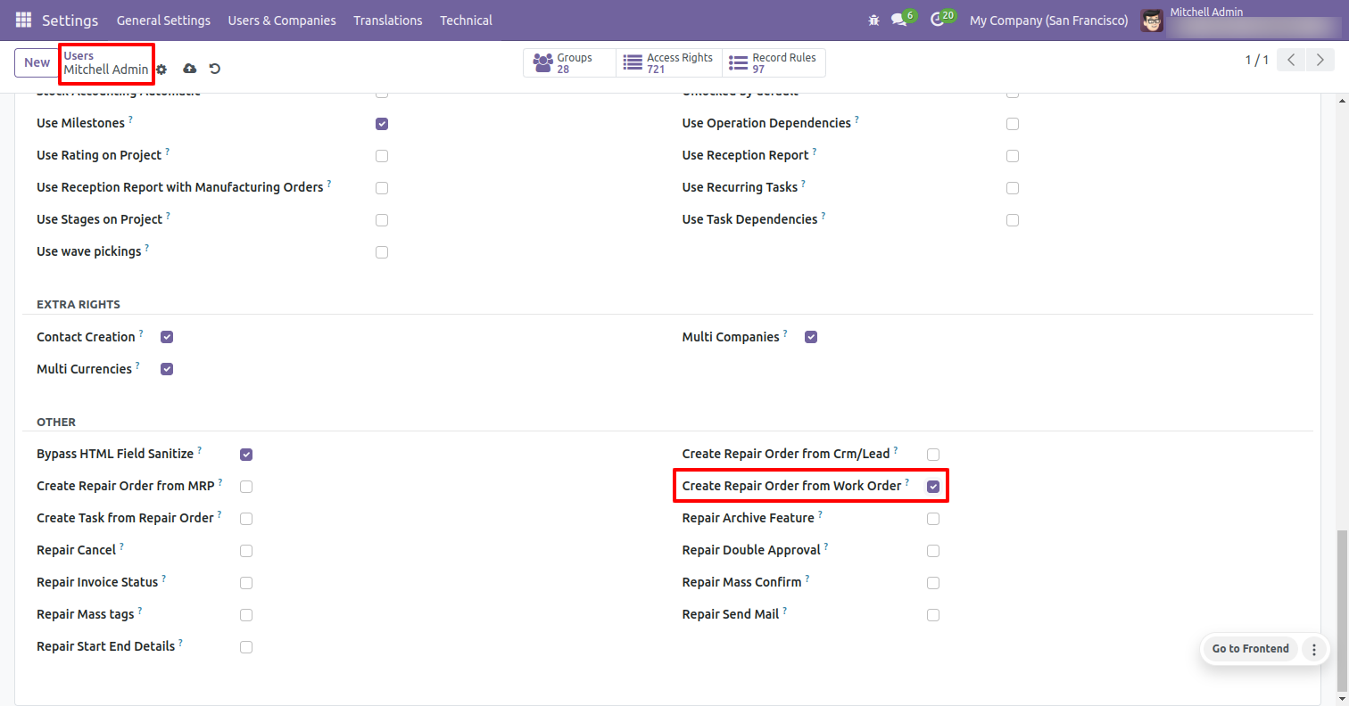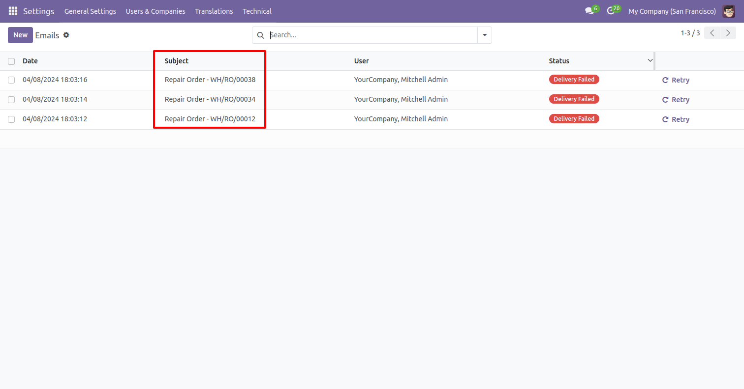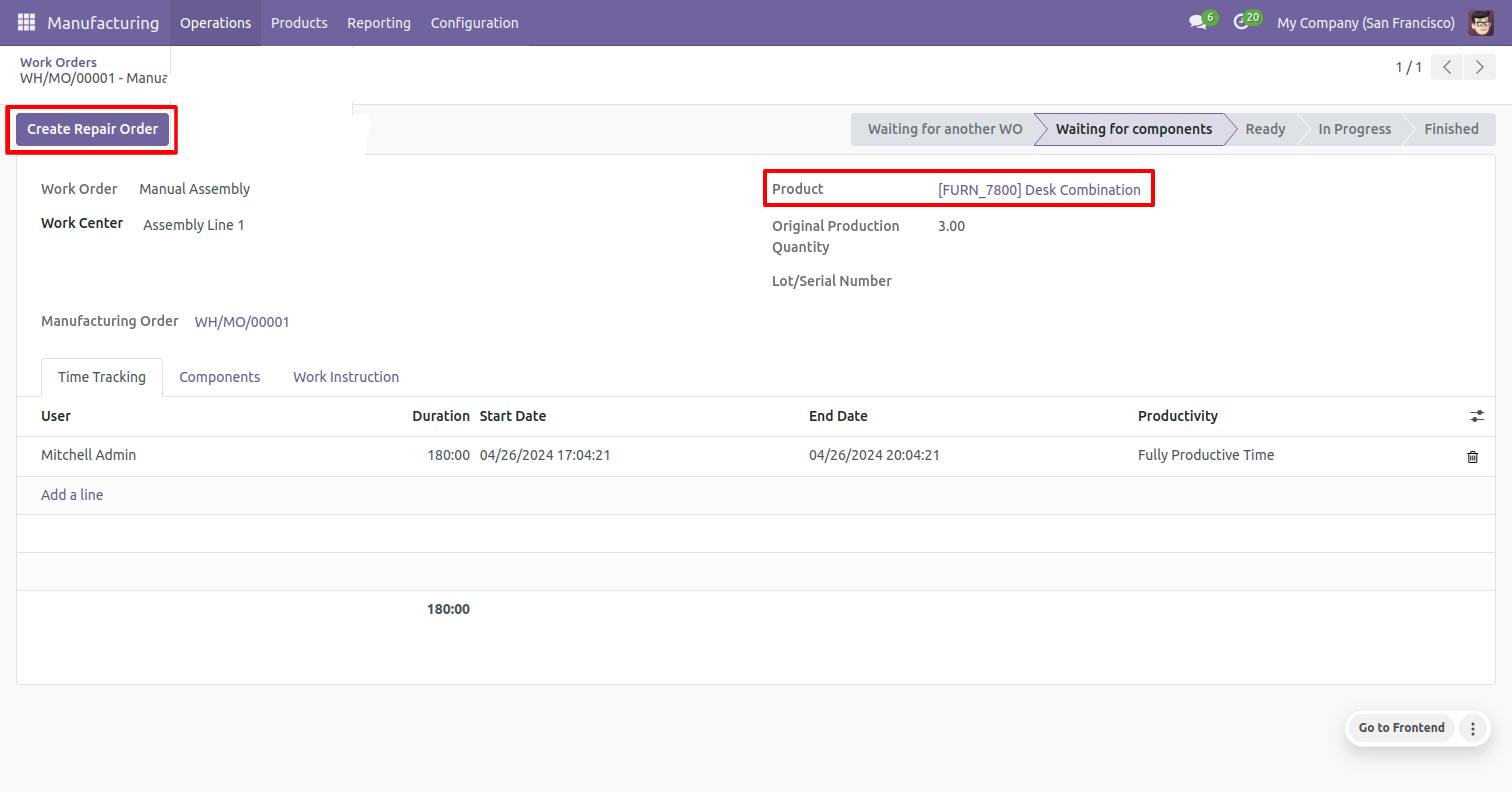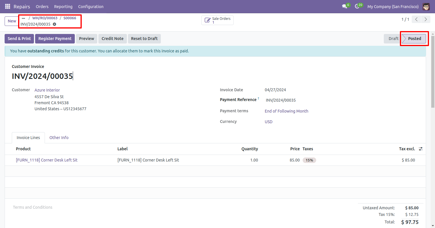 Click on the 'Repair Order' smart button to view the related Repair orders.