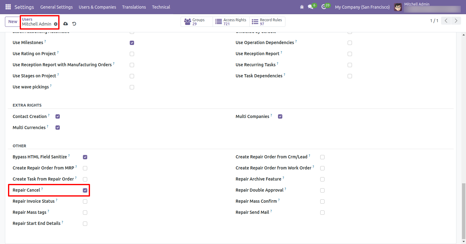 Go to the user settings and enable the 'Repair Cancel' boolean.