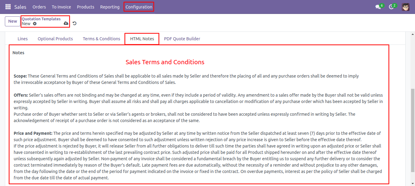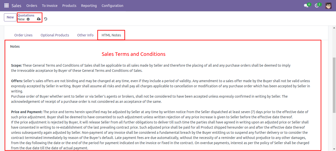 The HTML note in the quotation, you can write like tables, specification, Terms and condition with bullets points & you can attach files or images.