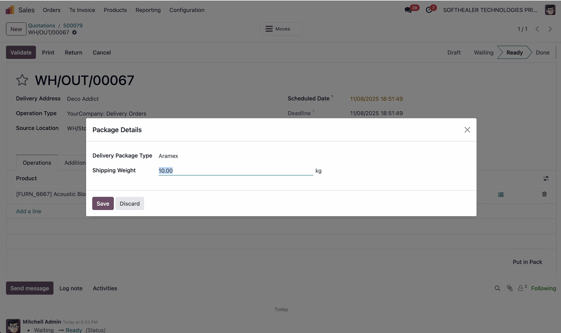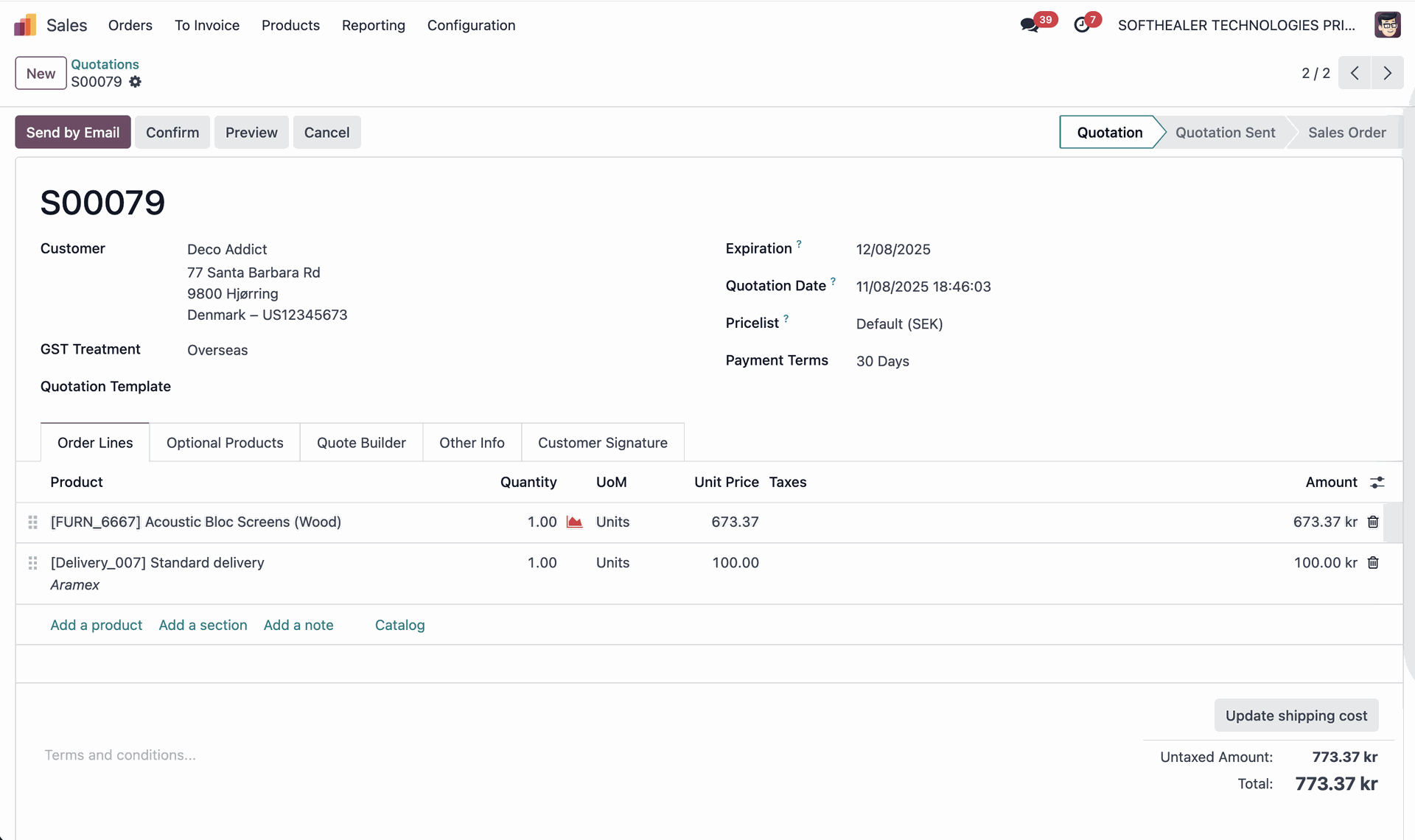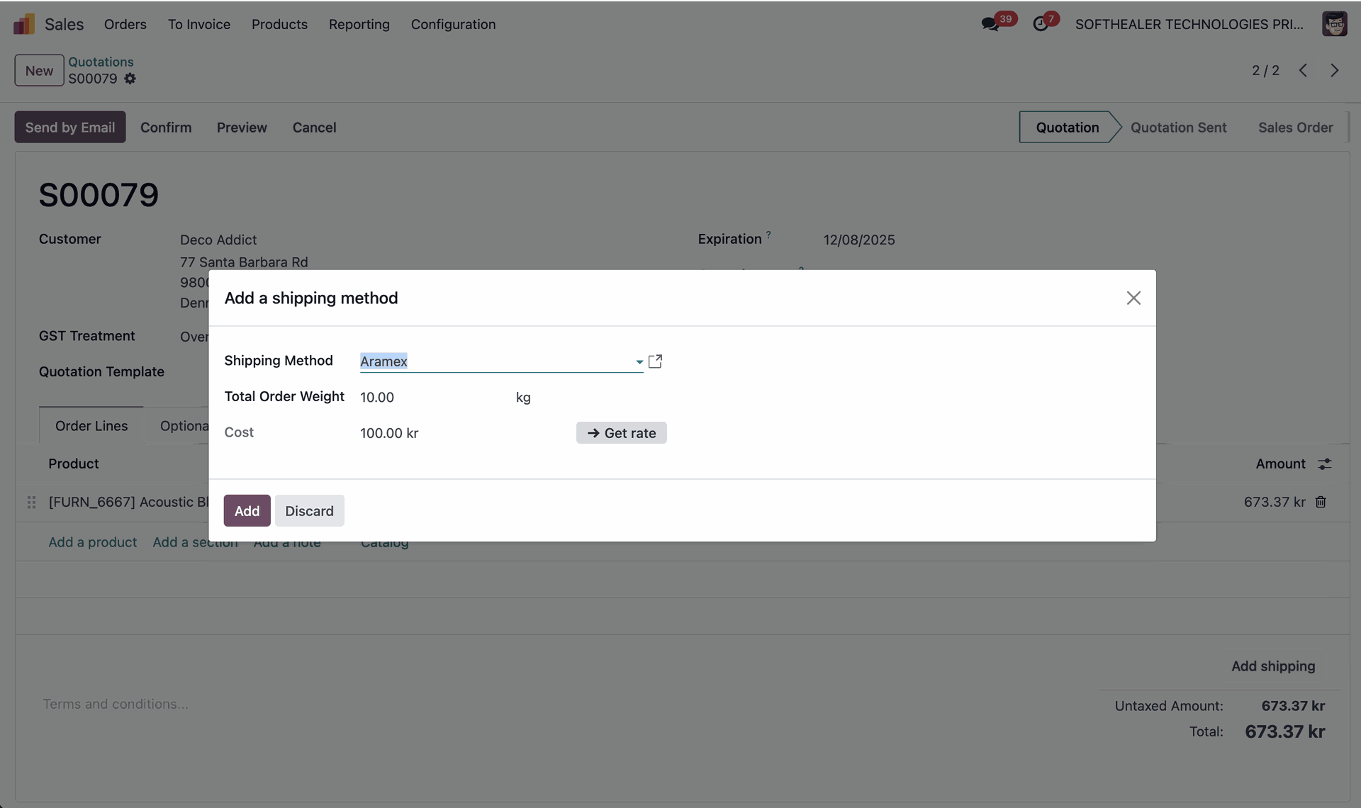 Select Aramex as the shipping method while creating a quotation to enable real-time rate fetching and automated shipment processing through Aramex.