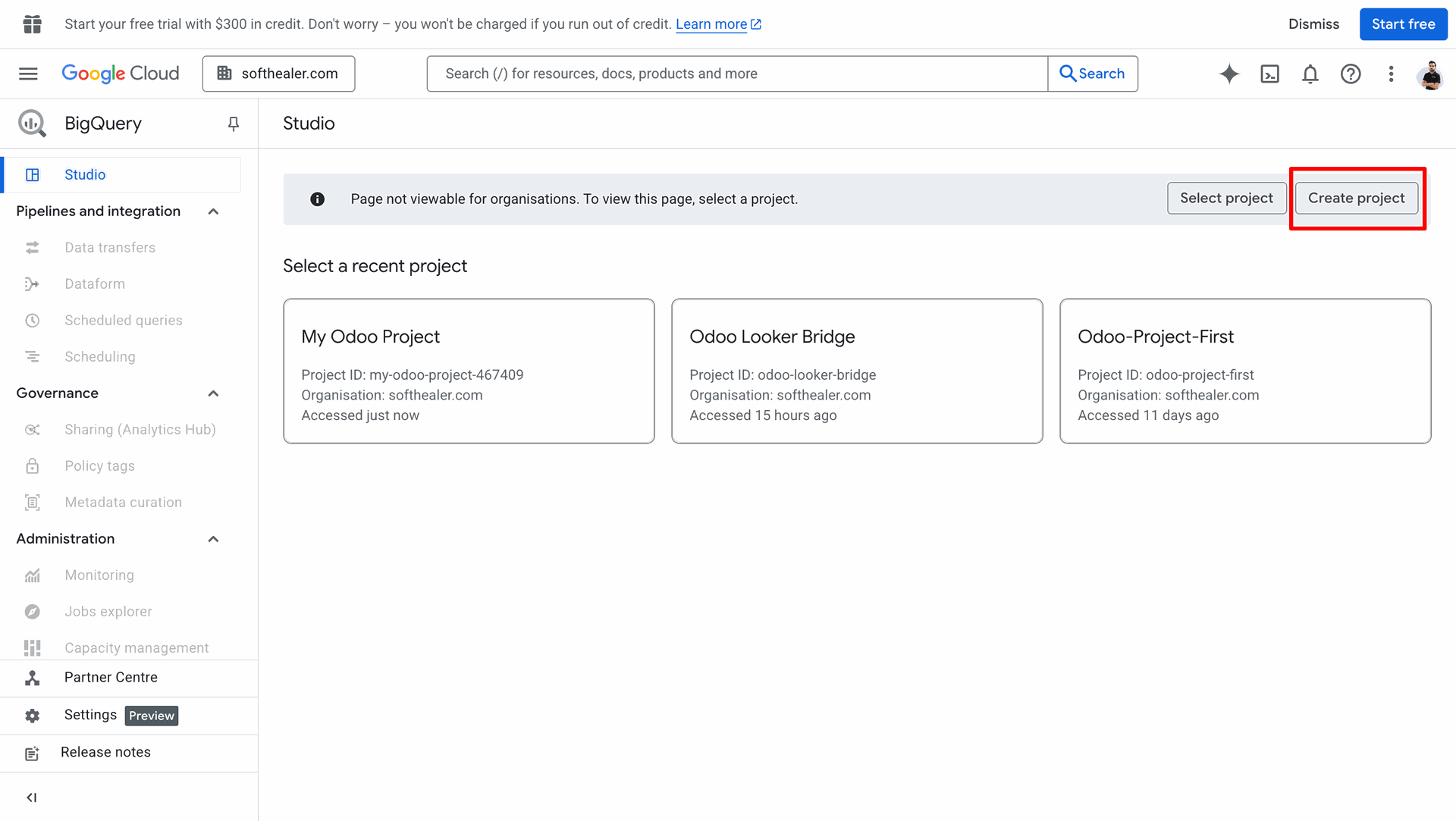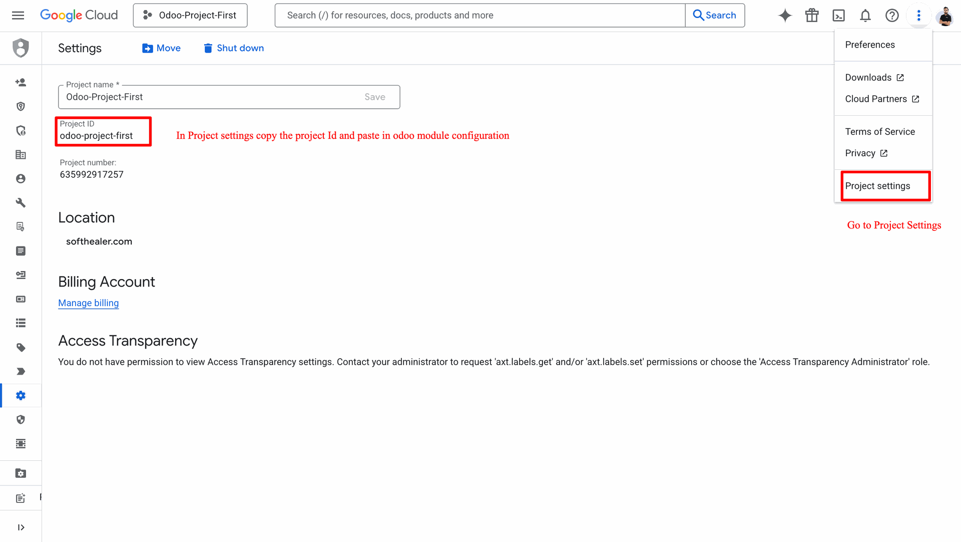 Copy the project ID and paste it into the Odoo module's 'BigQuery Configuration'.