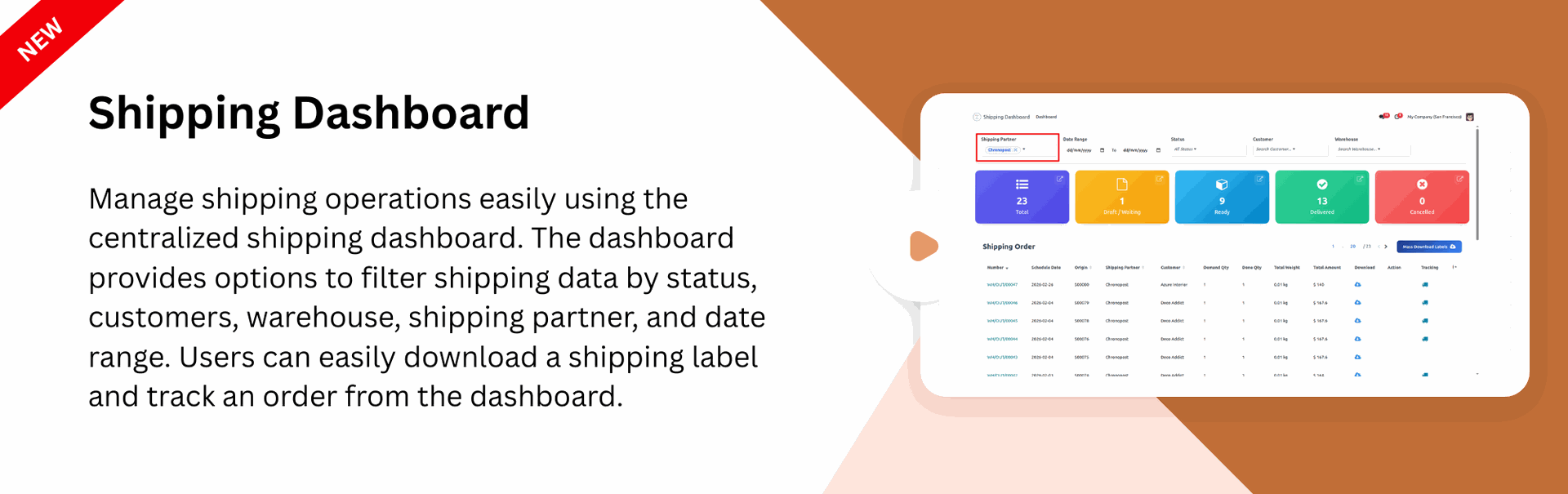 Get a centralized view of all shipping activities in one place. The dashboard provides quick operational insights.
