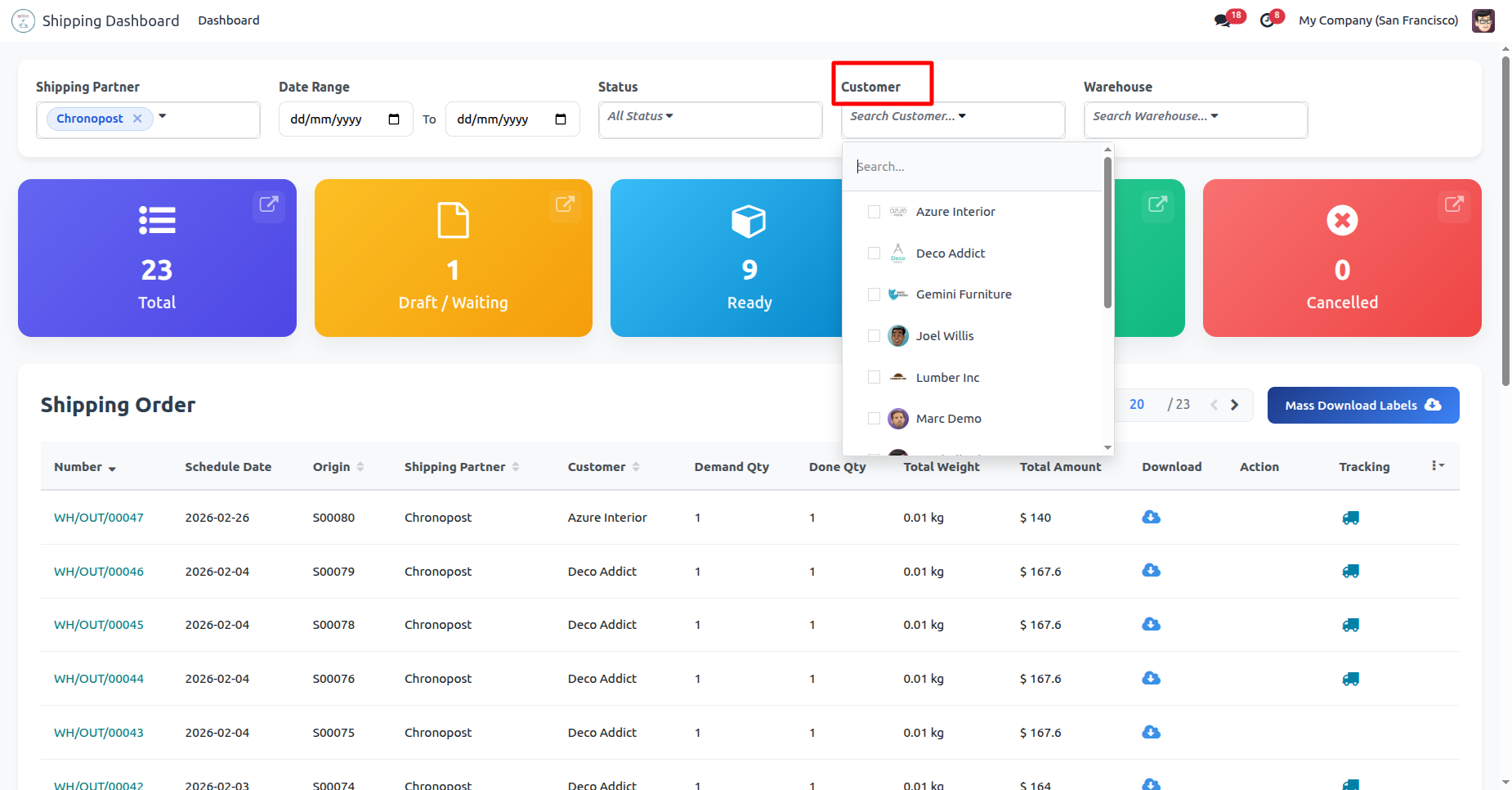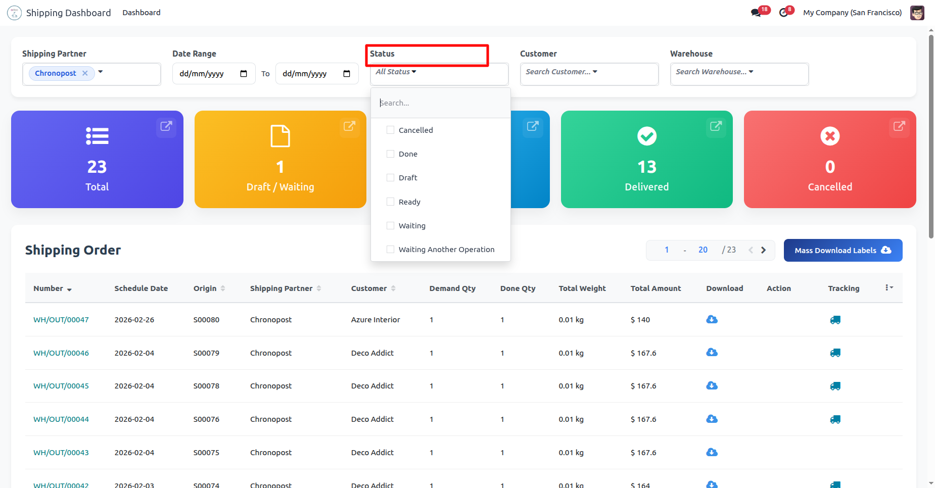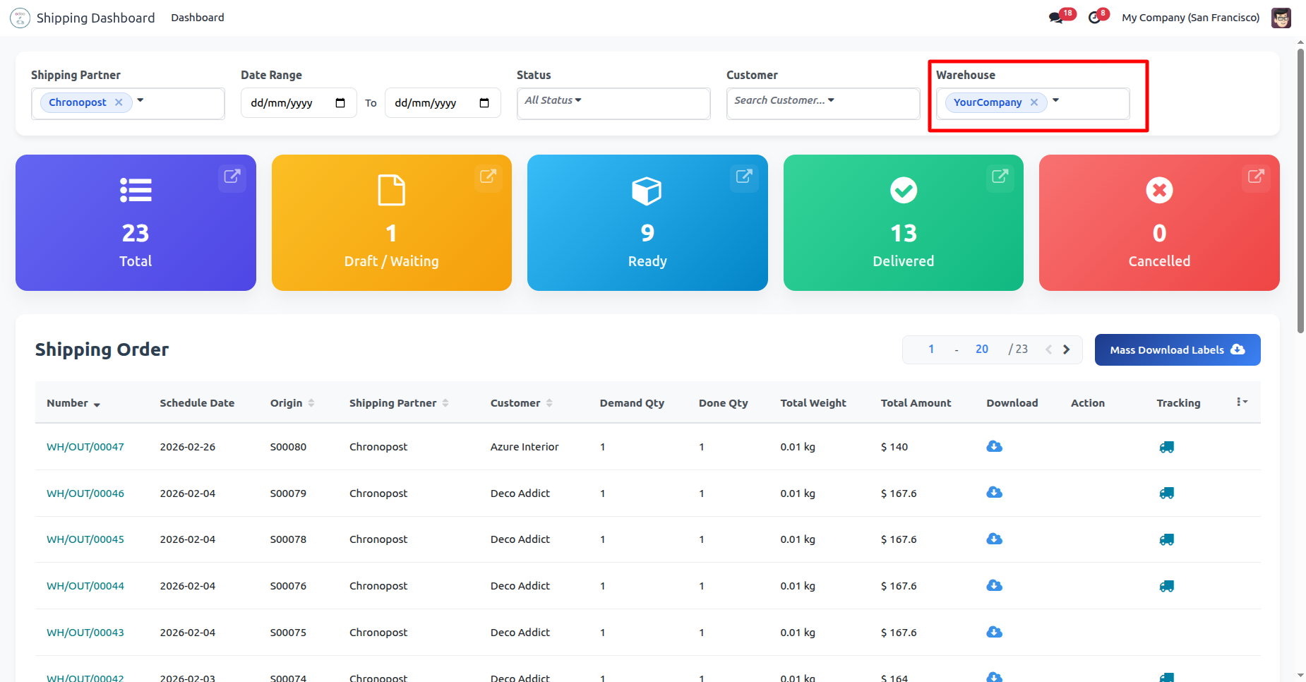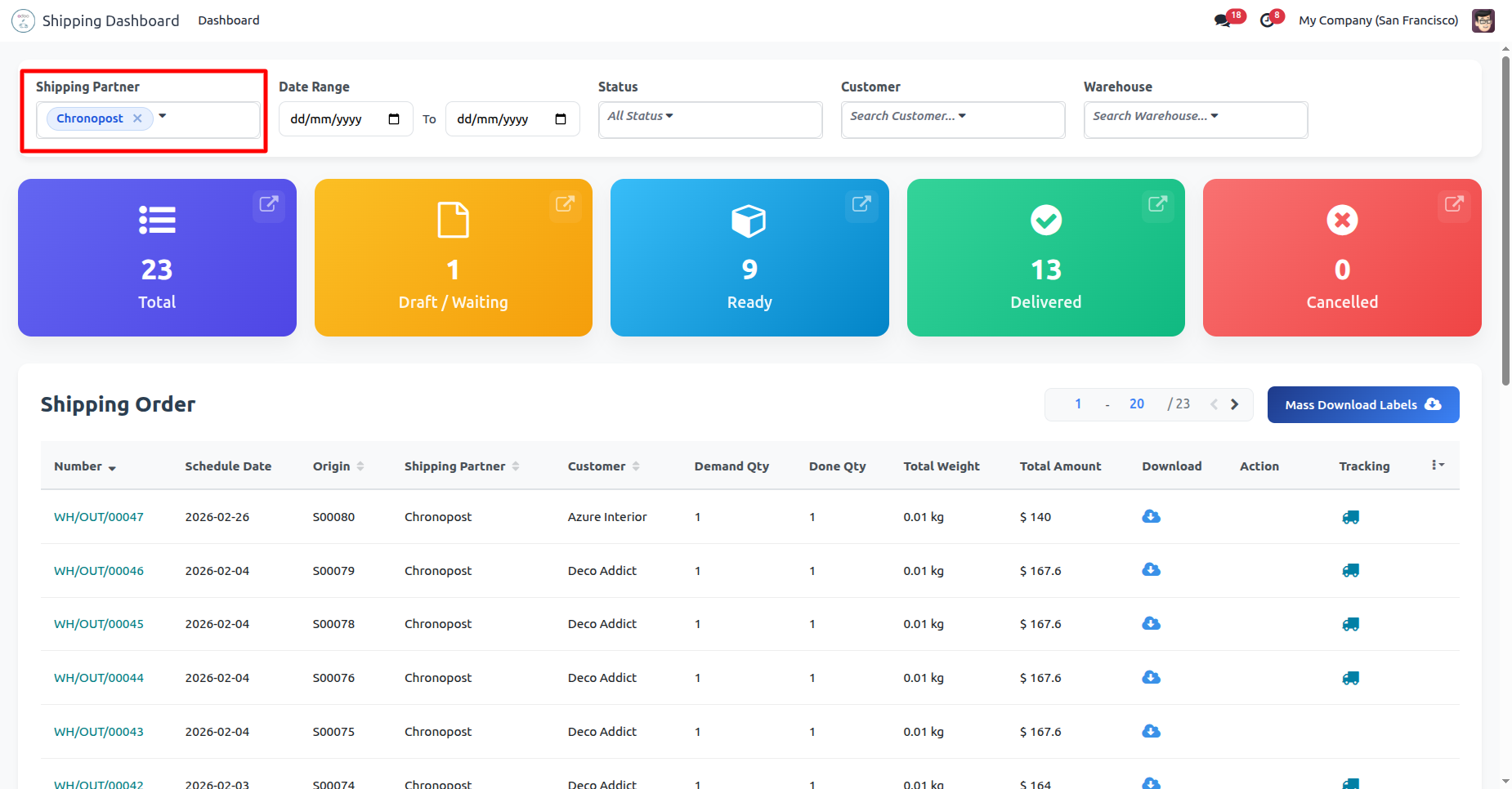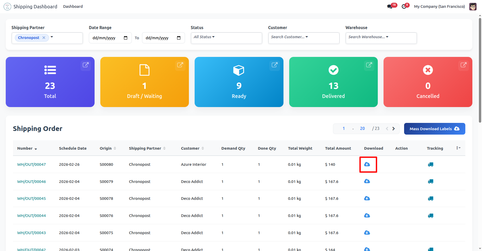 Click 'Mass Download Labels' to download all at single click, You can download and track shipping from the dashboard.