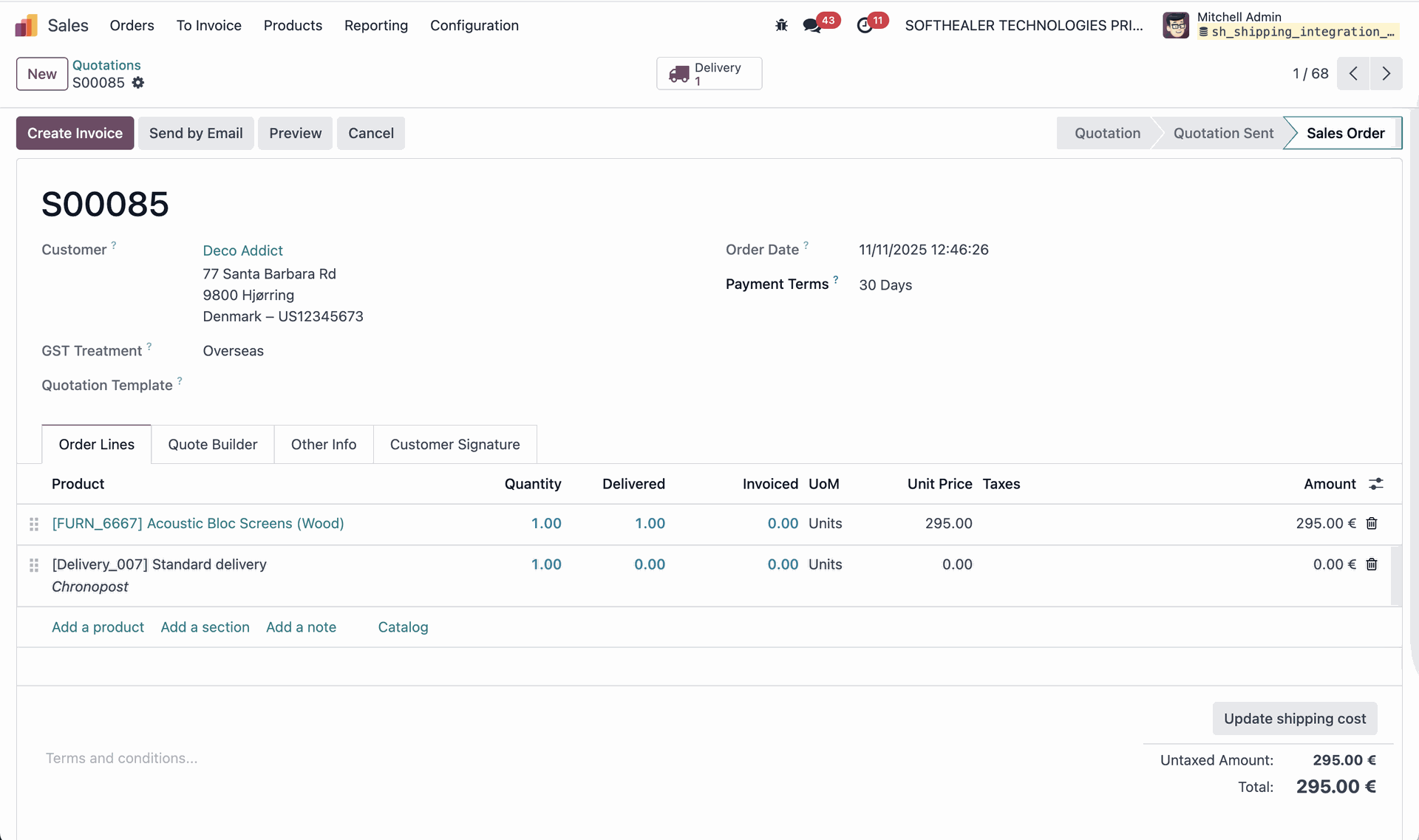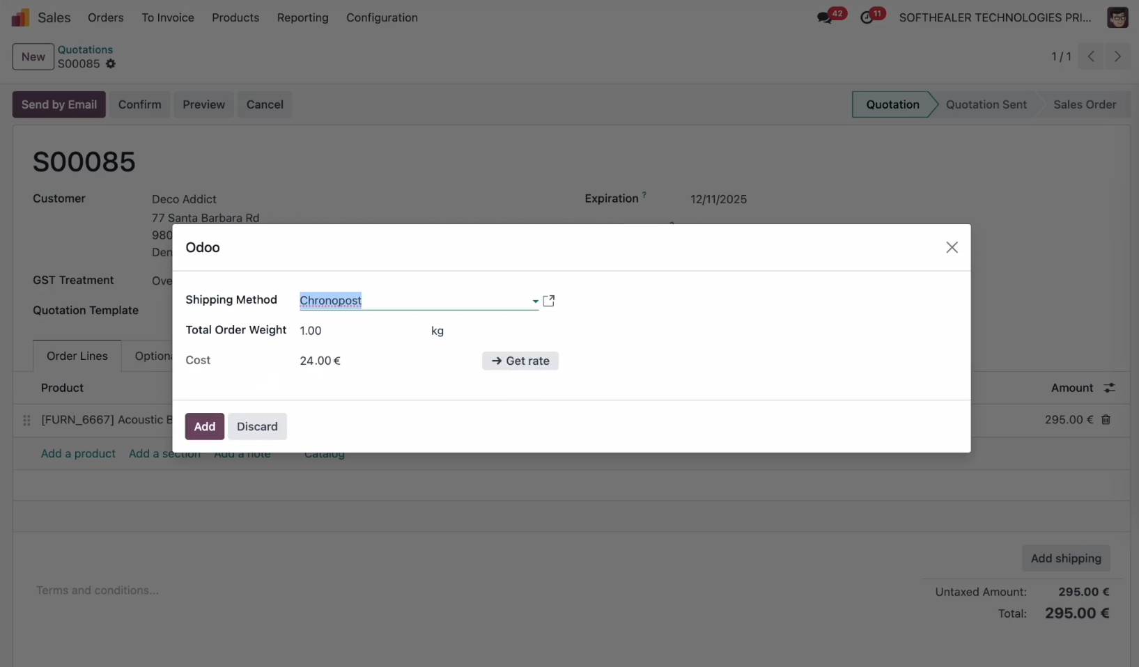Quotation with the Chronopost shipping method added.