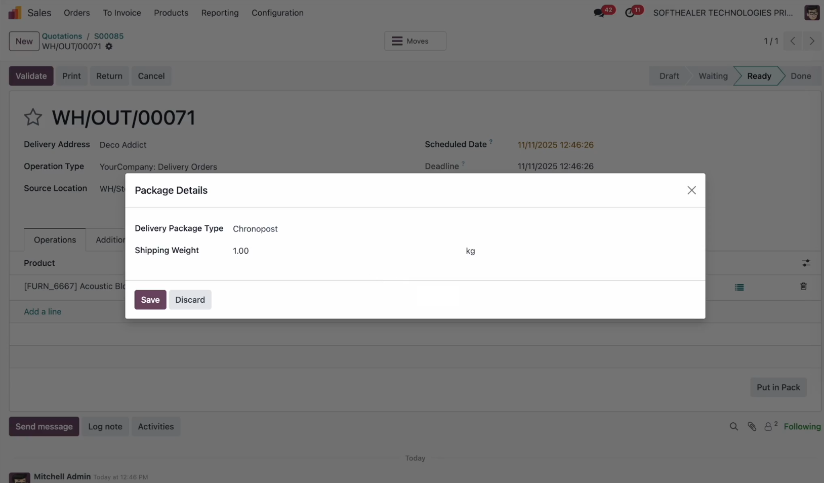 Select Chronopost as the shipping method while creating a quotation to enable real-time rate fetching and automated shipment processing through Chronopost.