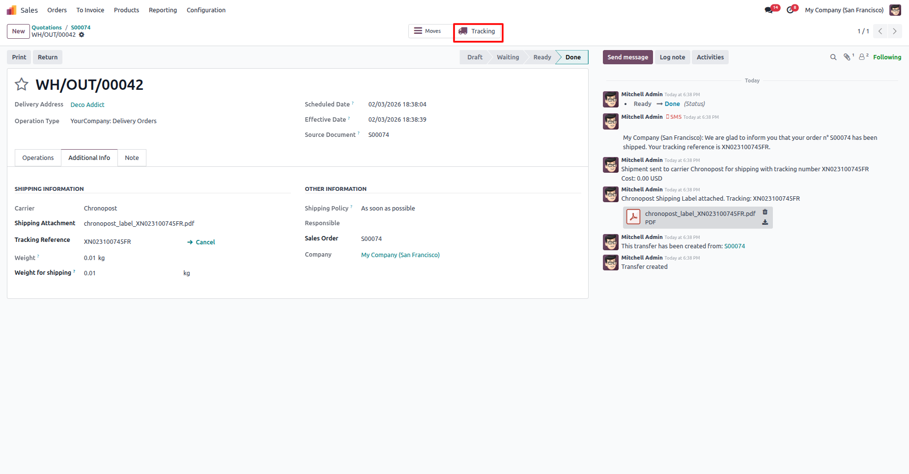 Click the Tracking button at backend to track the shipment.