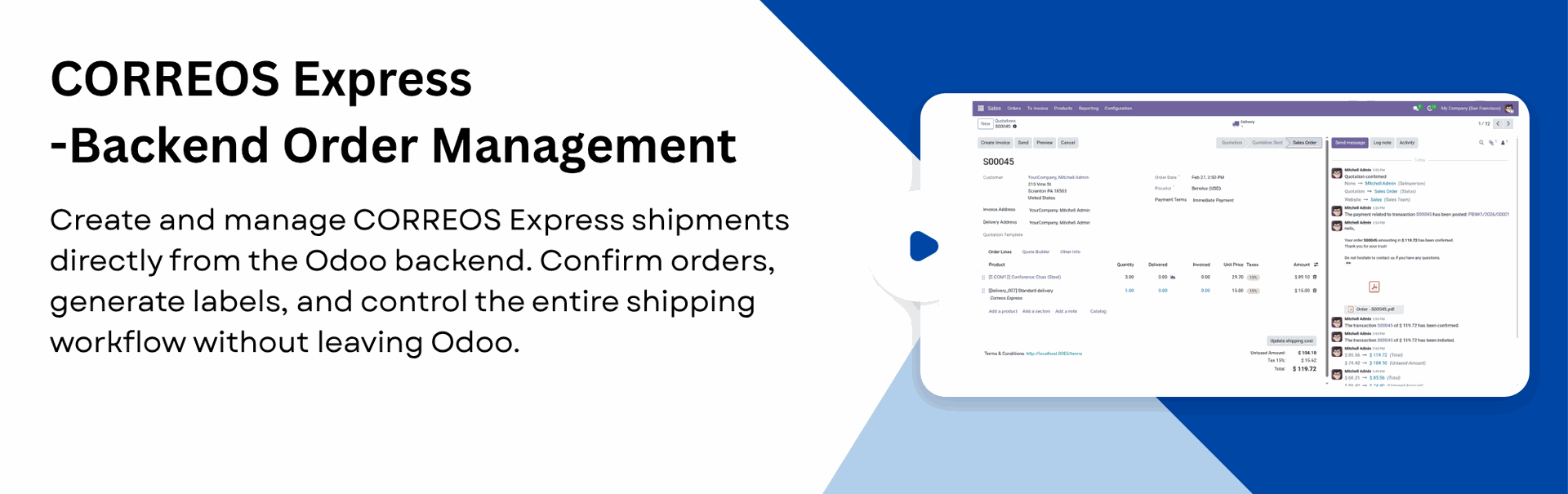 Real-time CORREOS Express integration for instant data sync between Odoo and CORREOS Express.