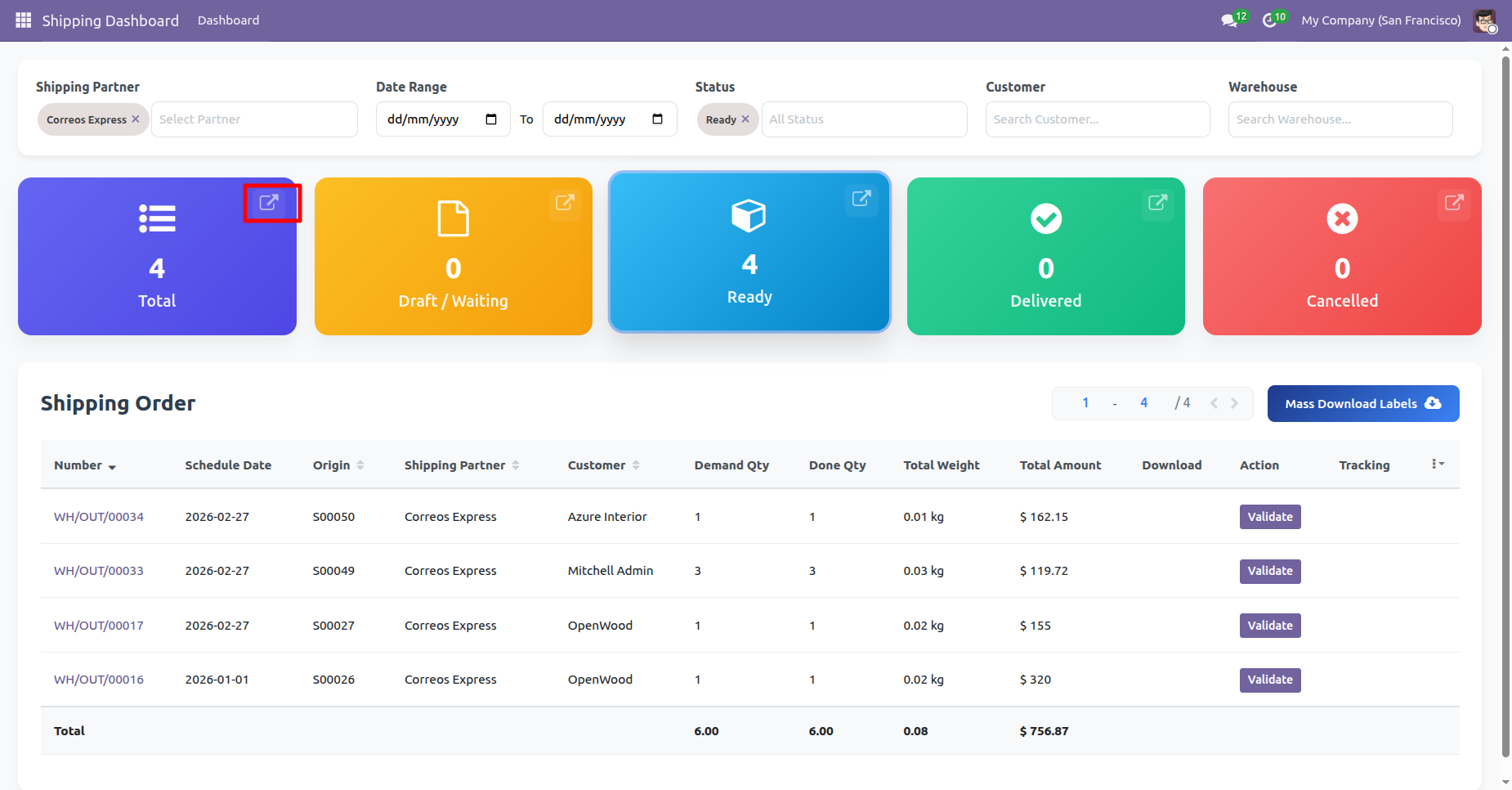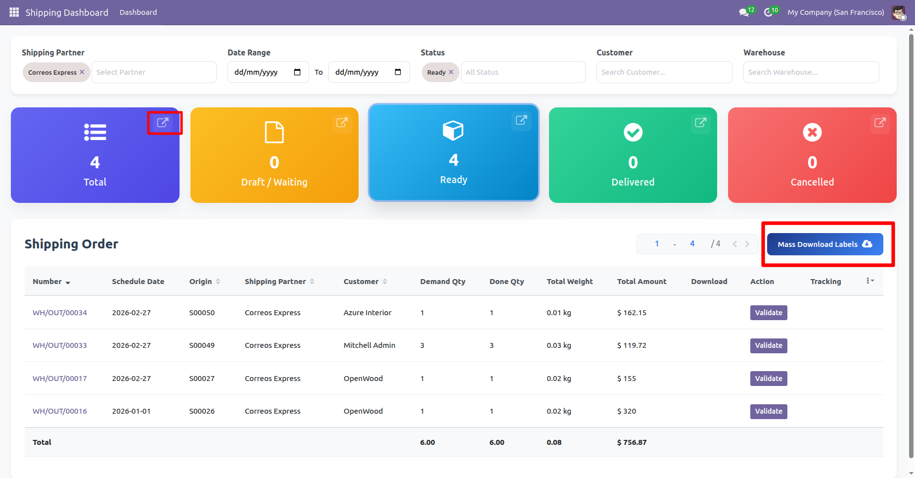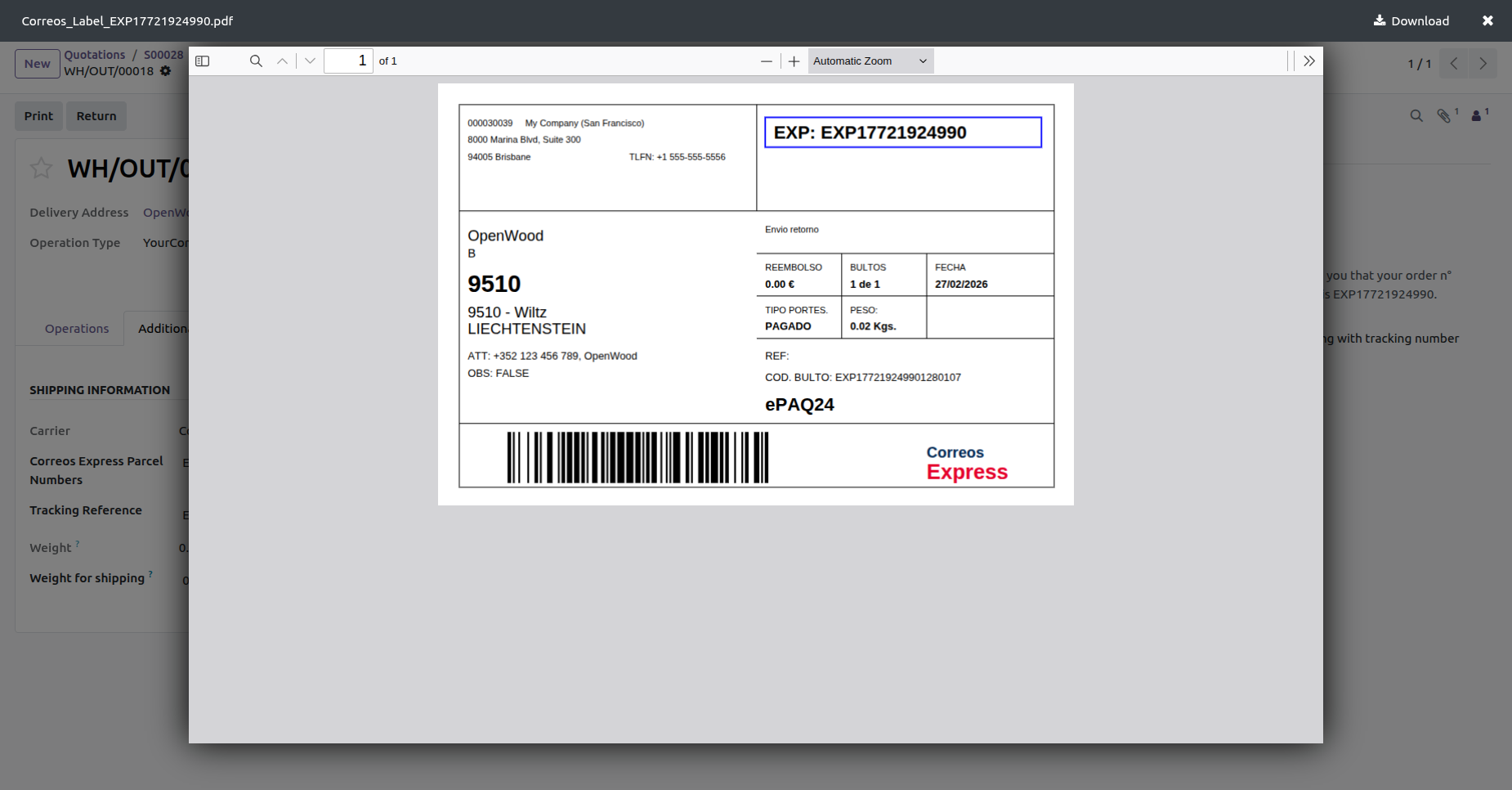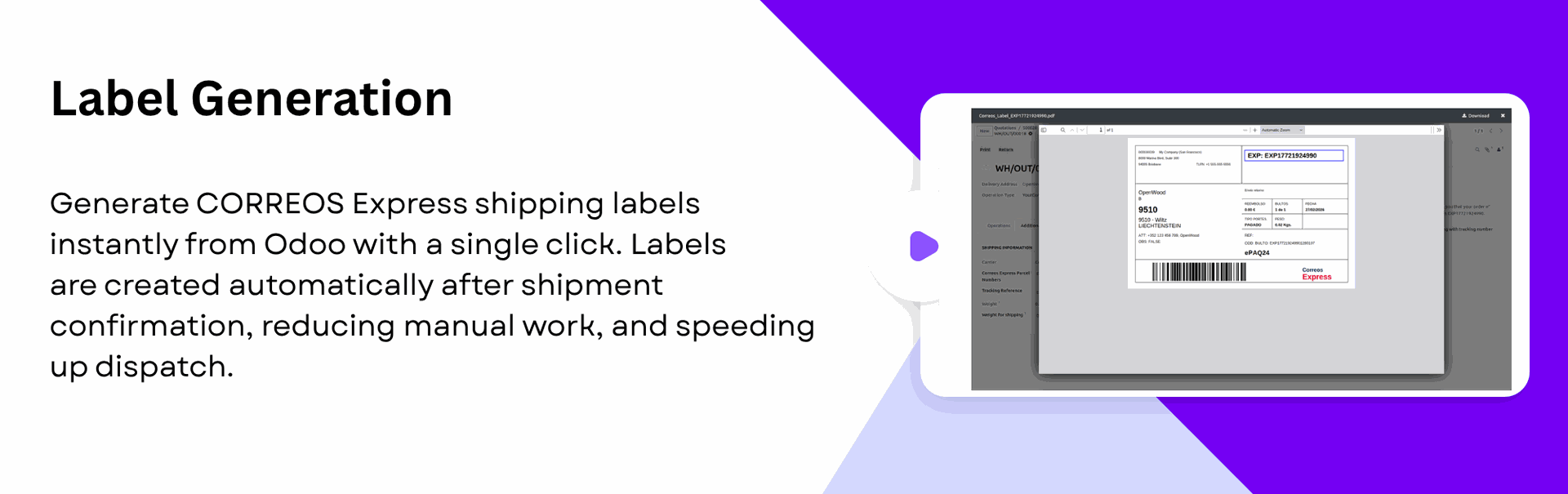 Generate multiple shipping labels in one action directly from Odoo, allowing you to process bulk delivery orders faster.