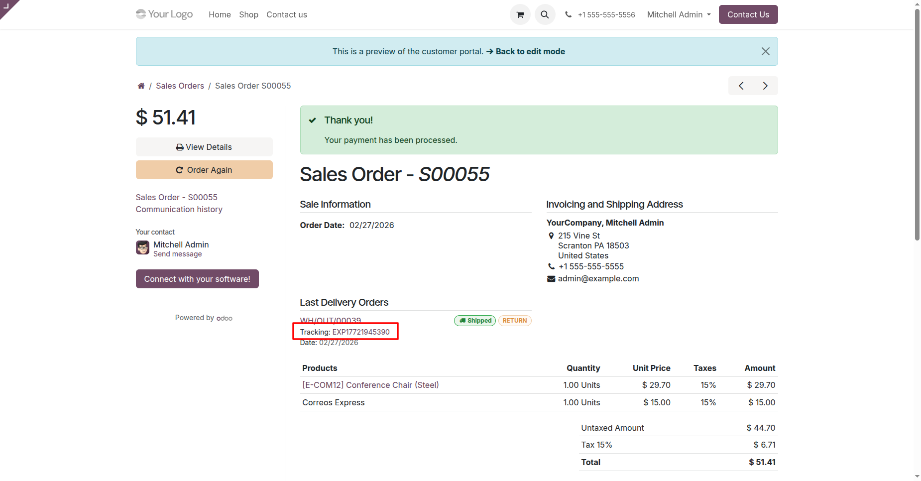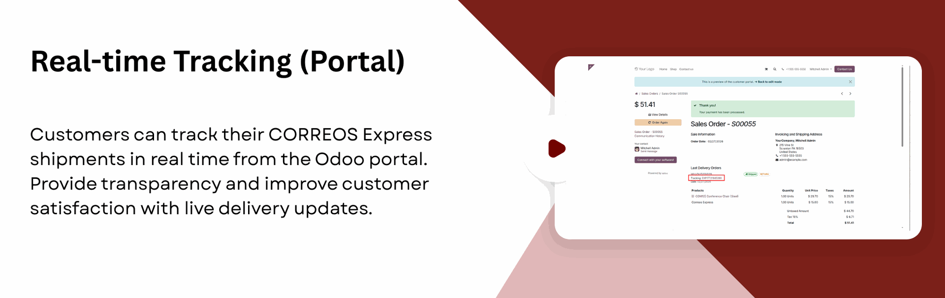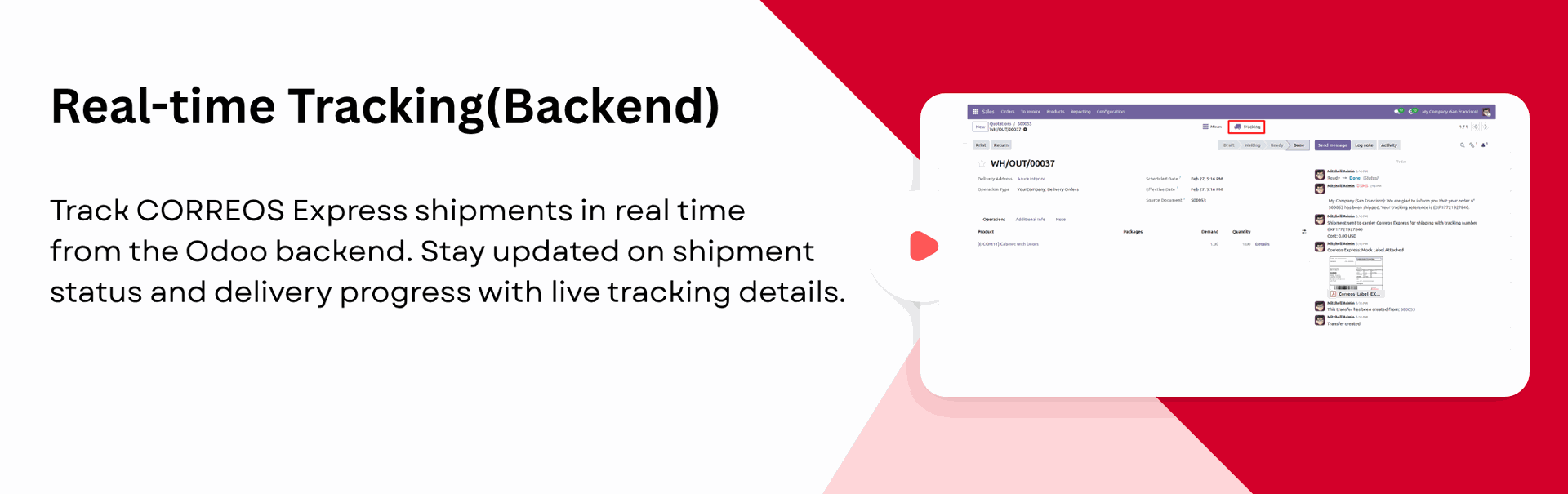 Track shipments in real-time within Odoo, admins can monitor deliveries from the backend, while customers can track from portal.