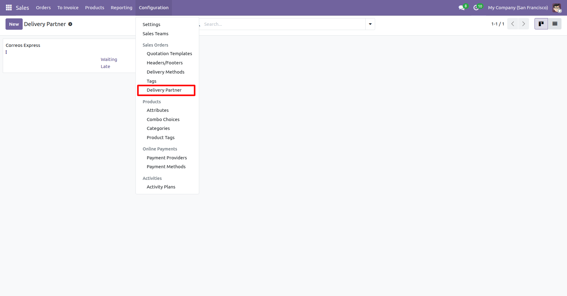 Go to the Inventory ==> Delivery Partner.