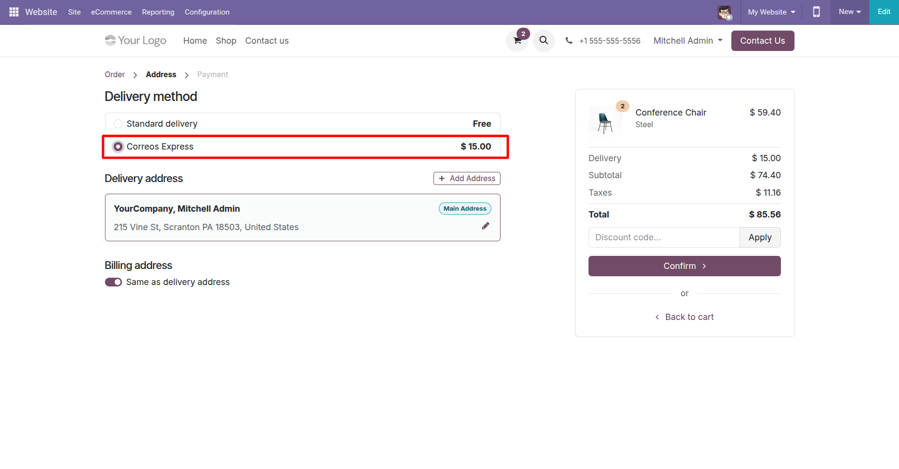 Select CORREOS Express delivery method.