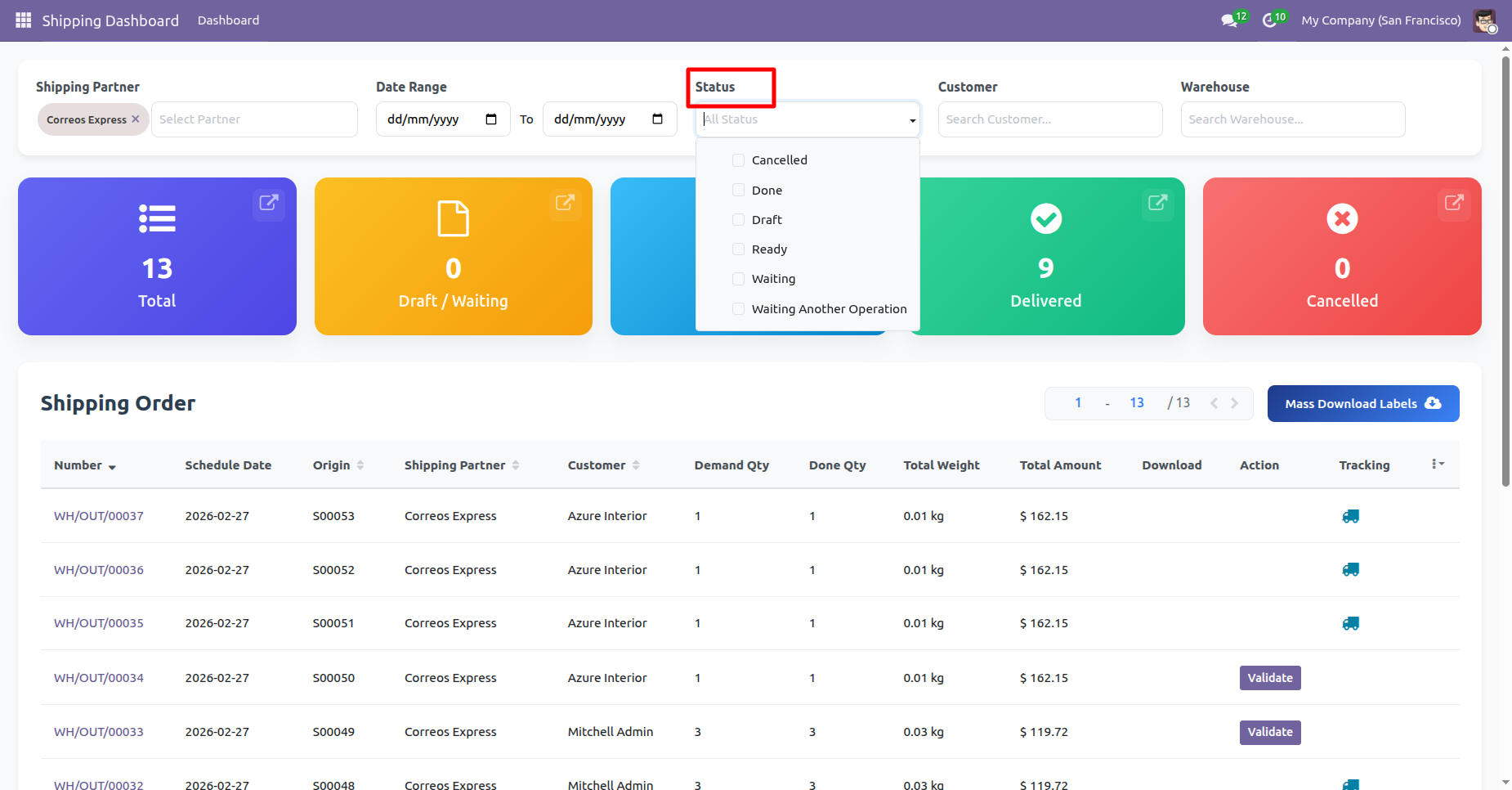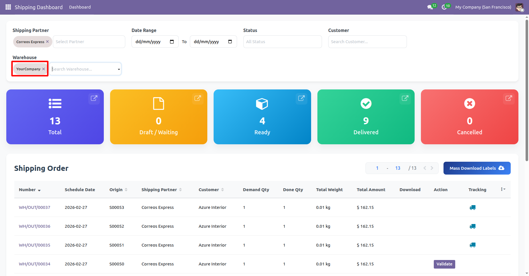 Click 'Mass Download Labels' to download all at single click, You can download and track shipping from the dashboard.