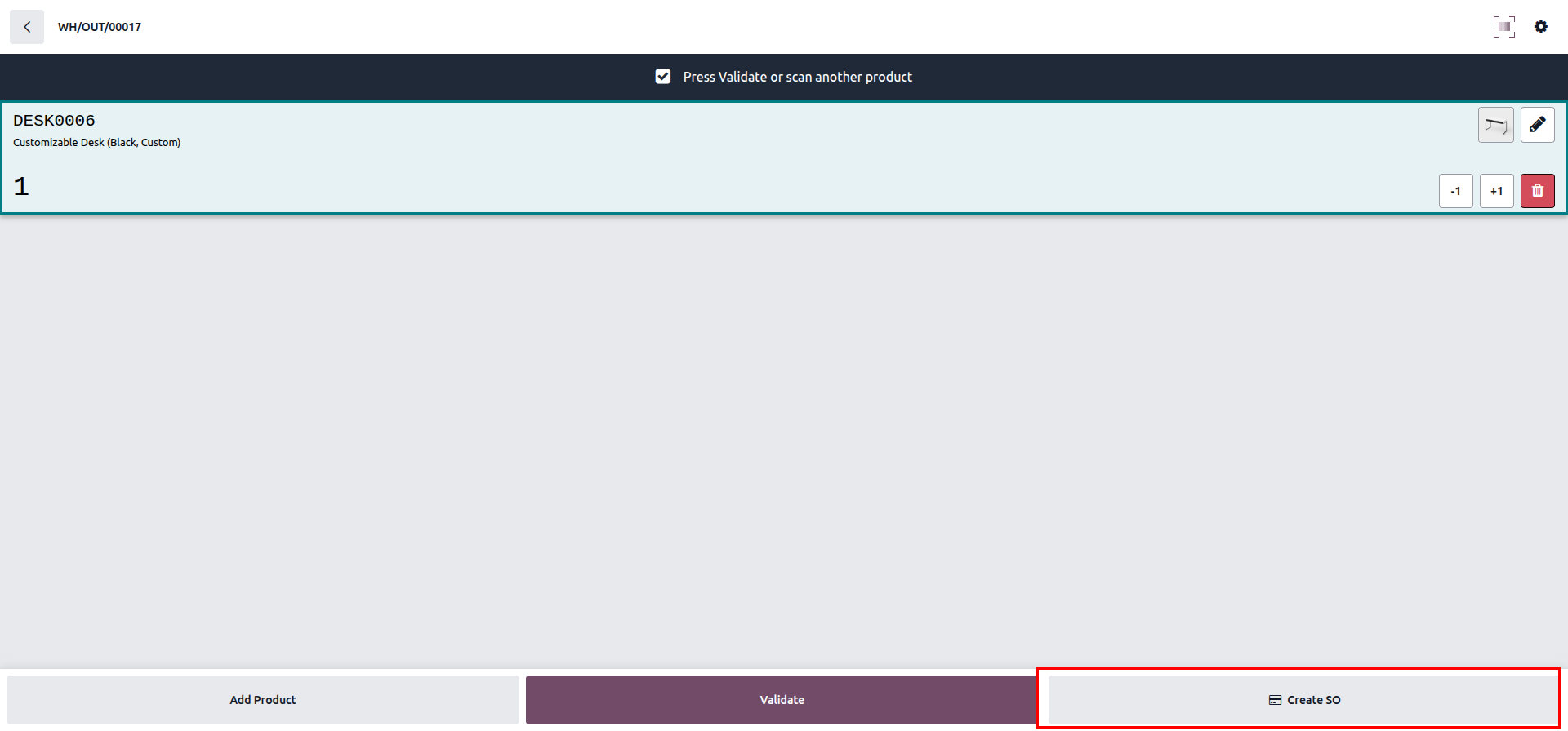 Barcode scanning interface to add products to Sales Order