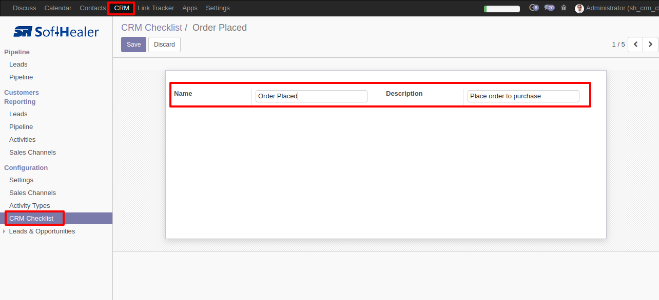 CRM Checklist Completed Percentage on Kanban View of Opportunity.
