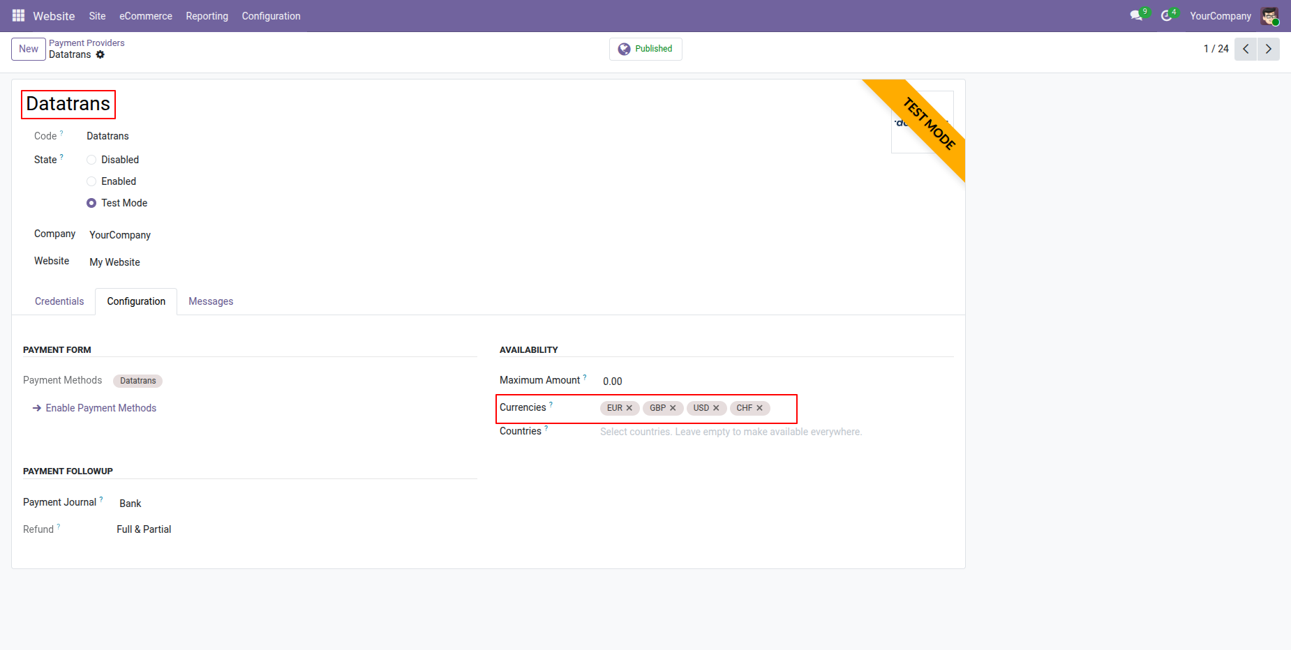 Enable Datatrans Payments across multiple Odoo websites.
