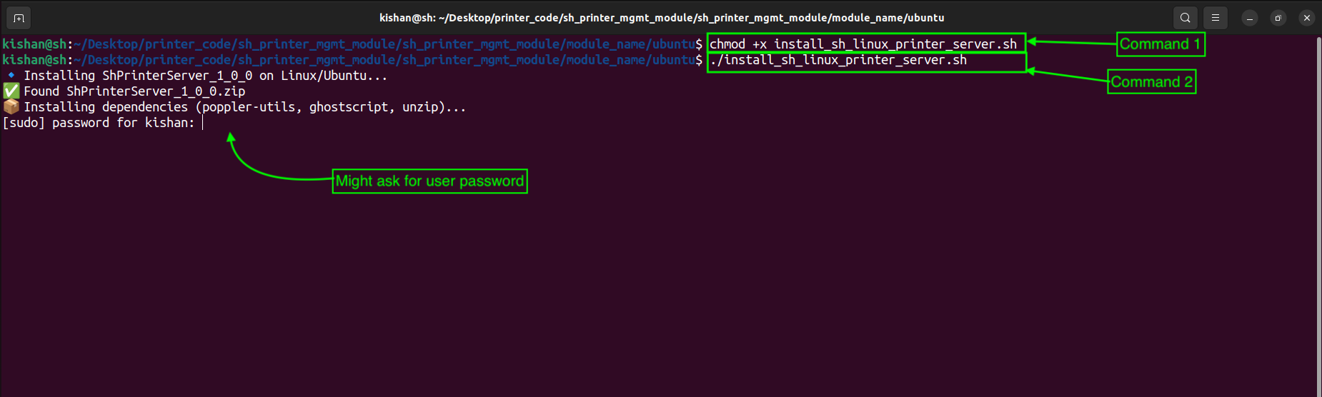 During Step 4, if your Ubuntu/Linux system is password protected, the terminal may prompt you to enter your system password. Please type your Ubuntu/Linux password when asked and press Enter to continue.