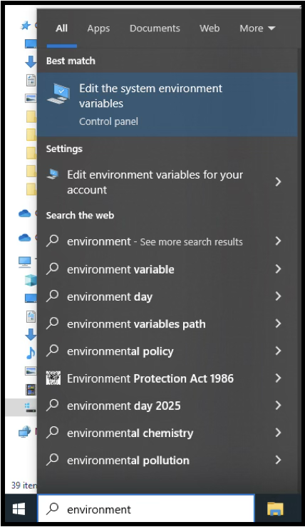 13. type “environment” Click on “Edit the system environment variables”