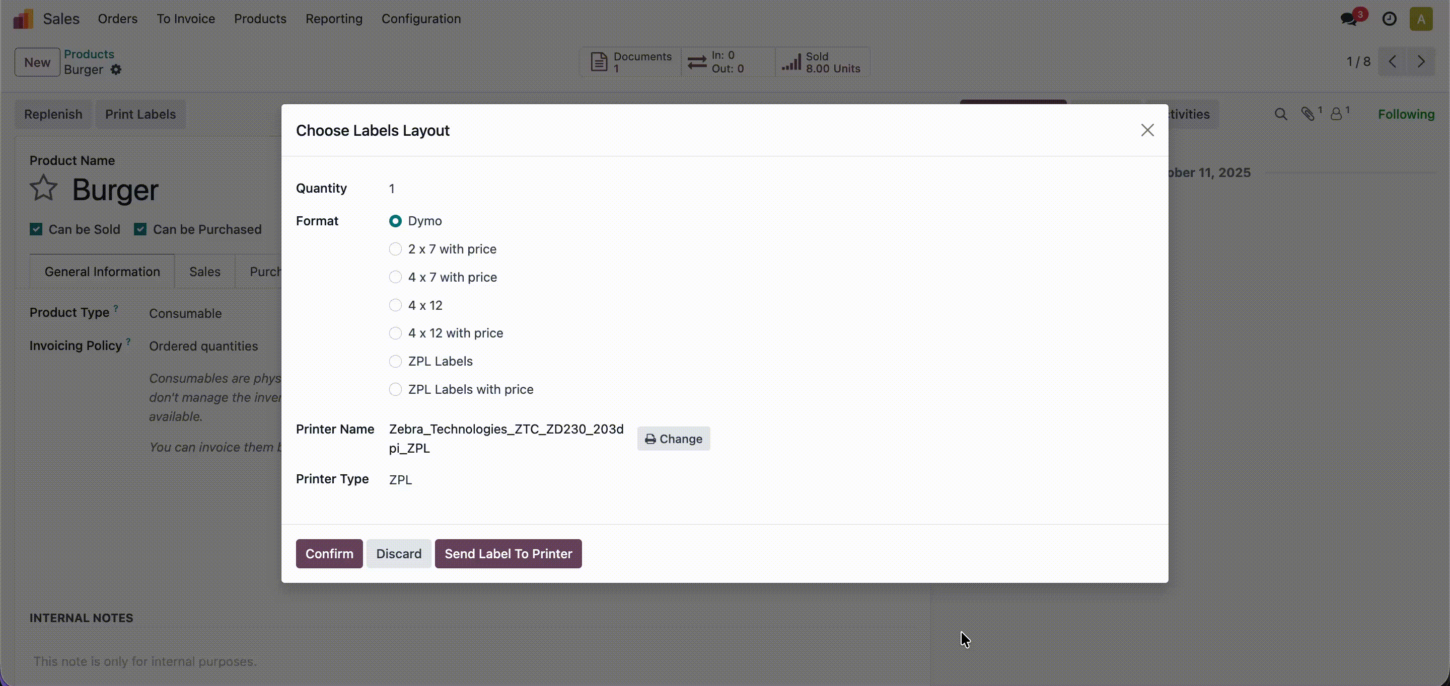 - Easily print product labels, sales orders, and receipts directly from Odoo.