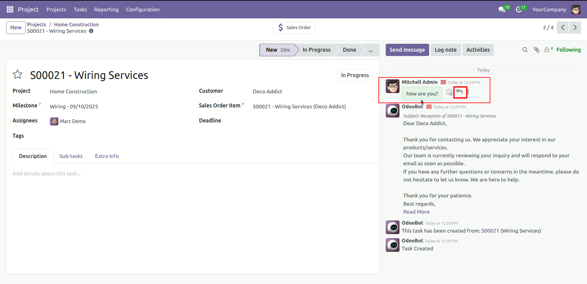 Here, the user can see the reply option when they hover the cursor over the message, click on the reply option.