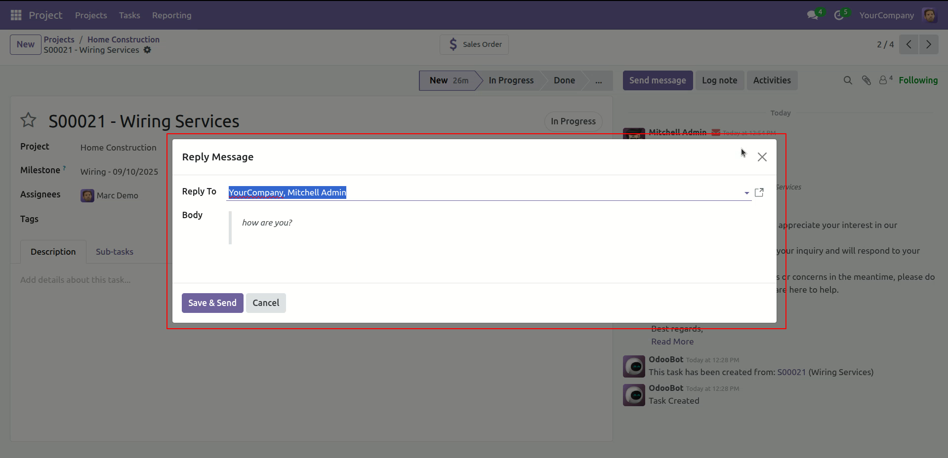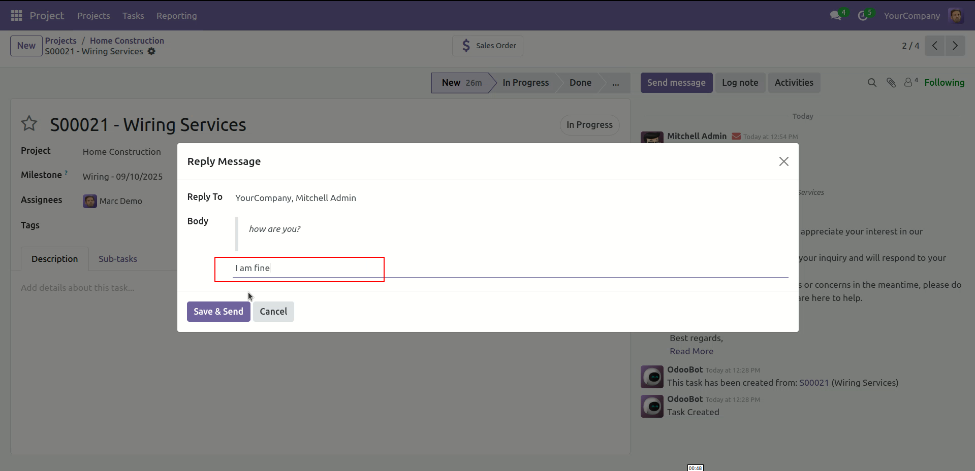 After that, the "Reply Message" wizard will appear. Enter your message and click on the "Save & Send" button.