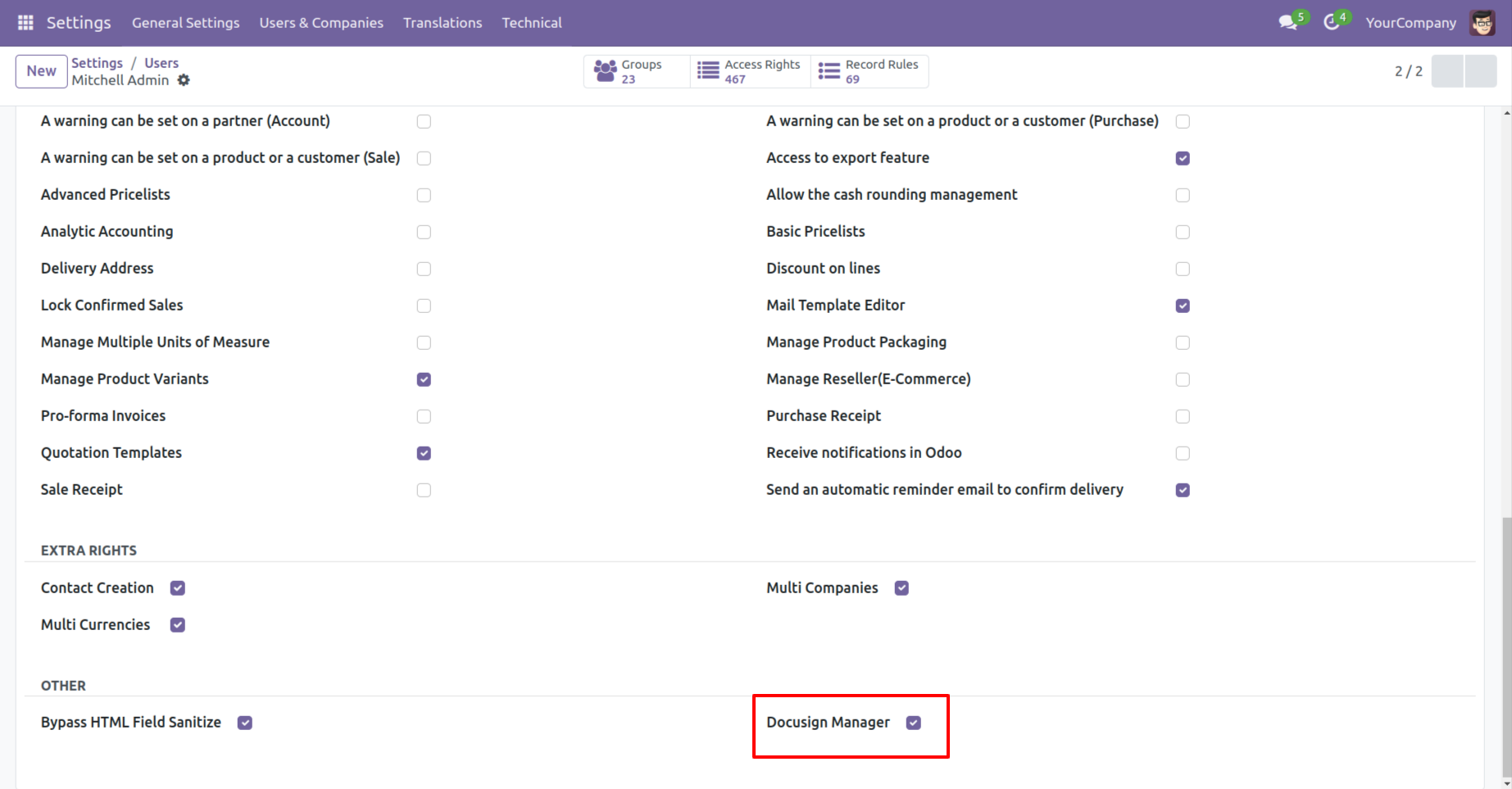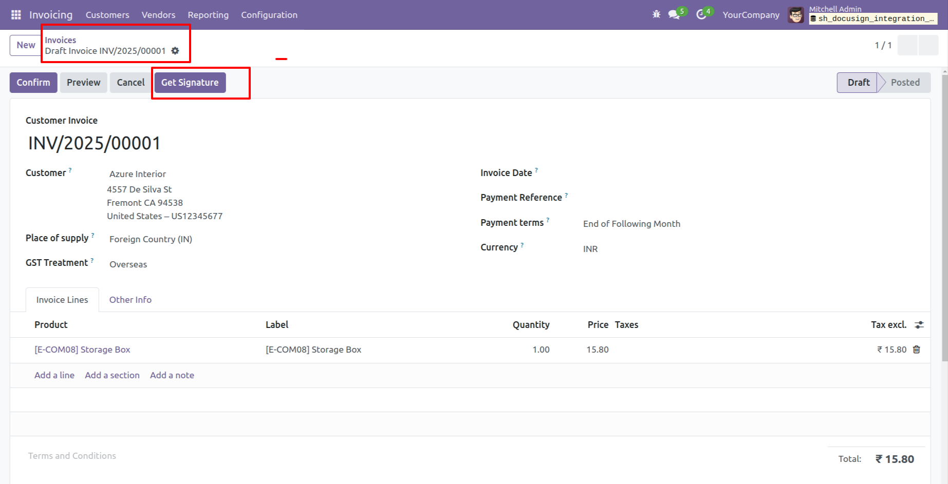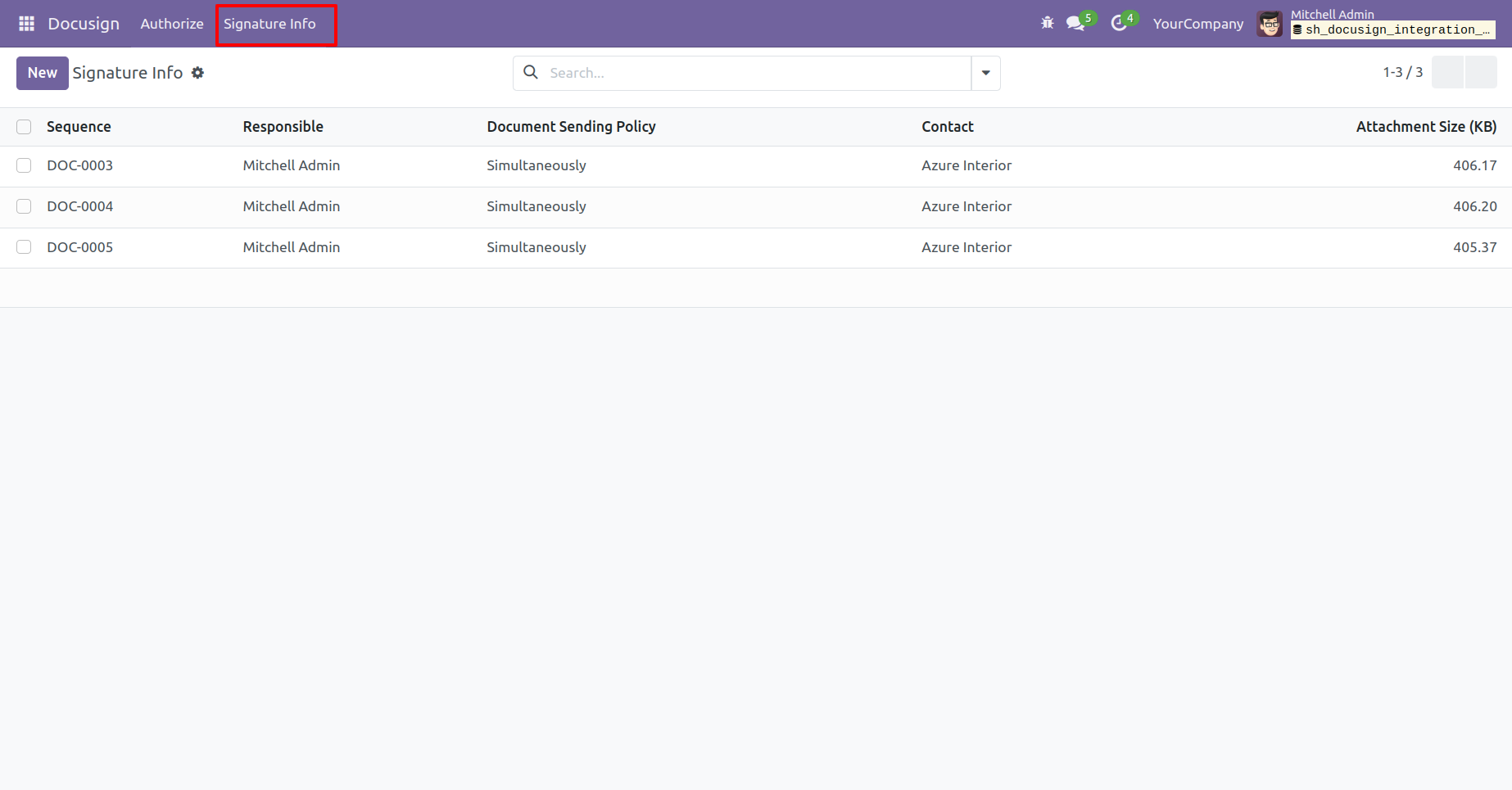 - You can send documents directly to partners from Odoo for signing via DocuSign.