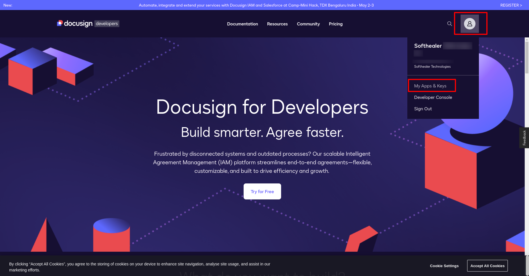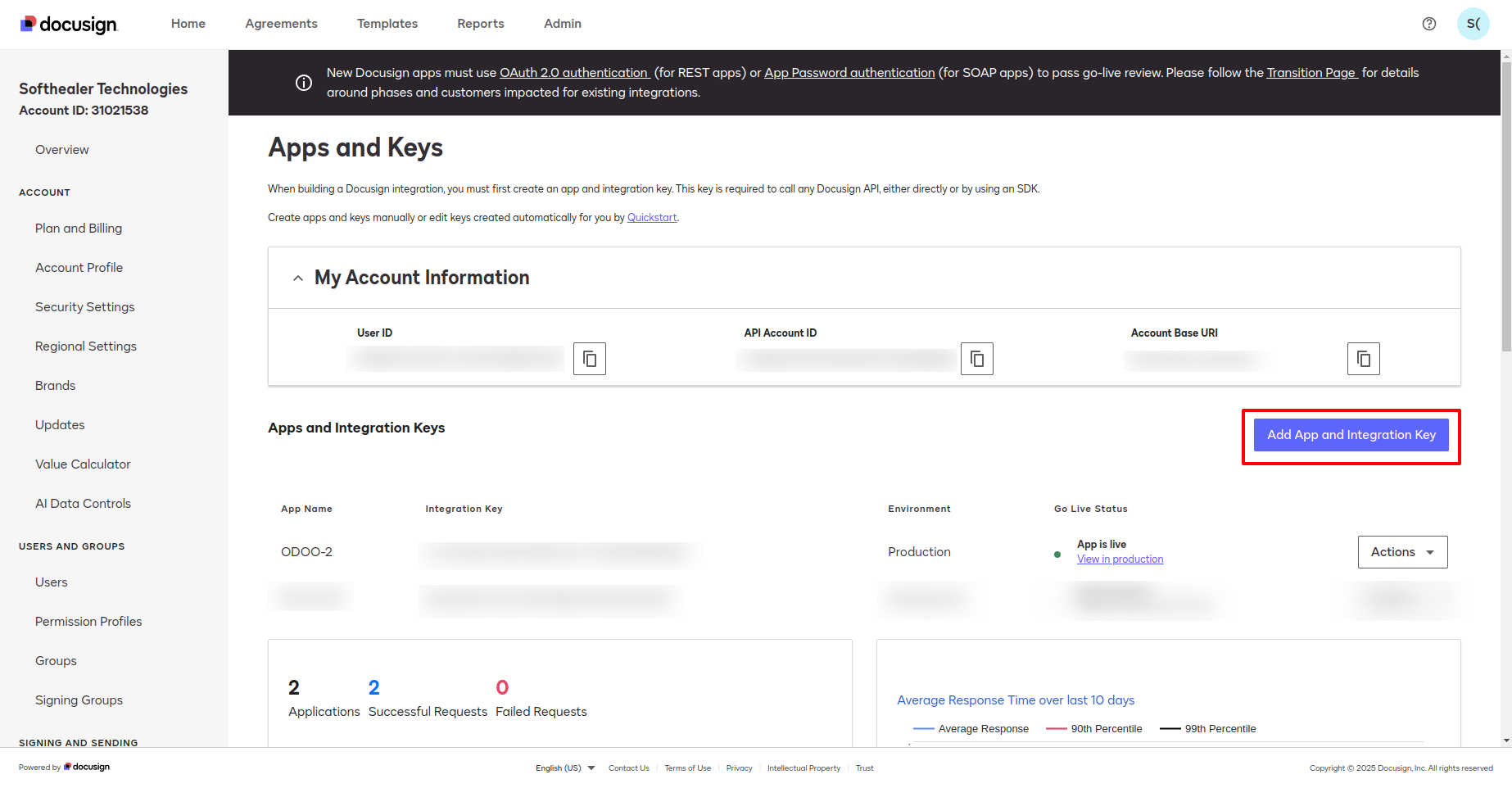 Docusign looks like below. Go to 'My Apps & Keys'.