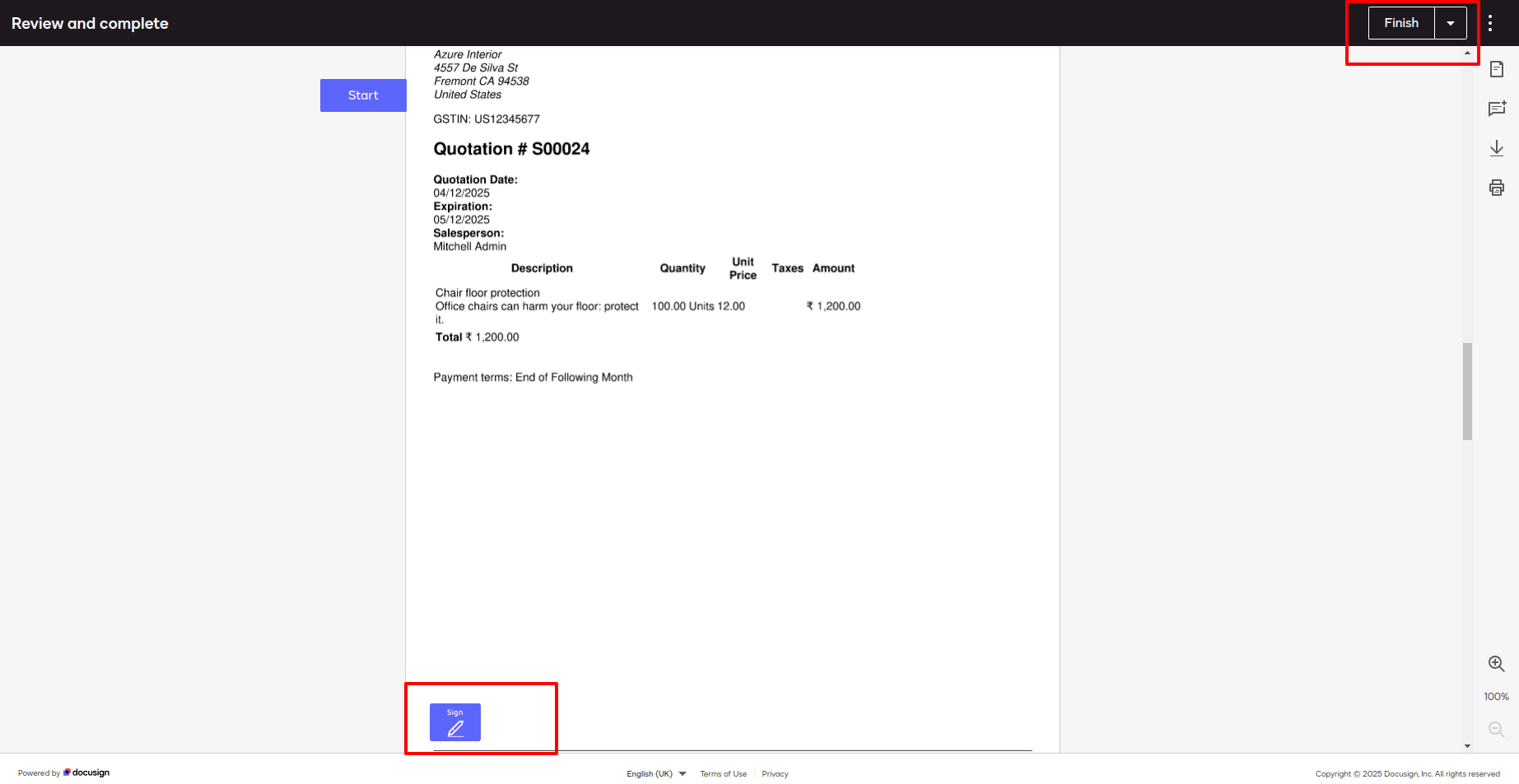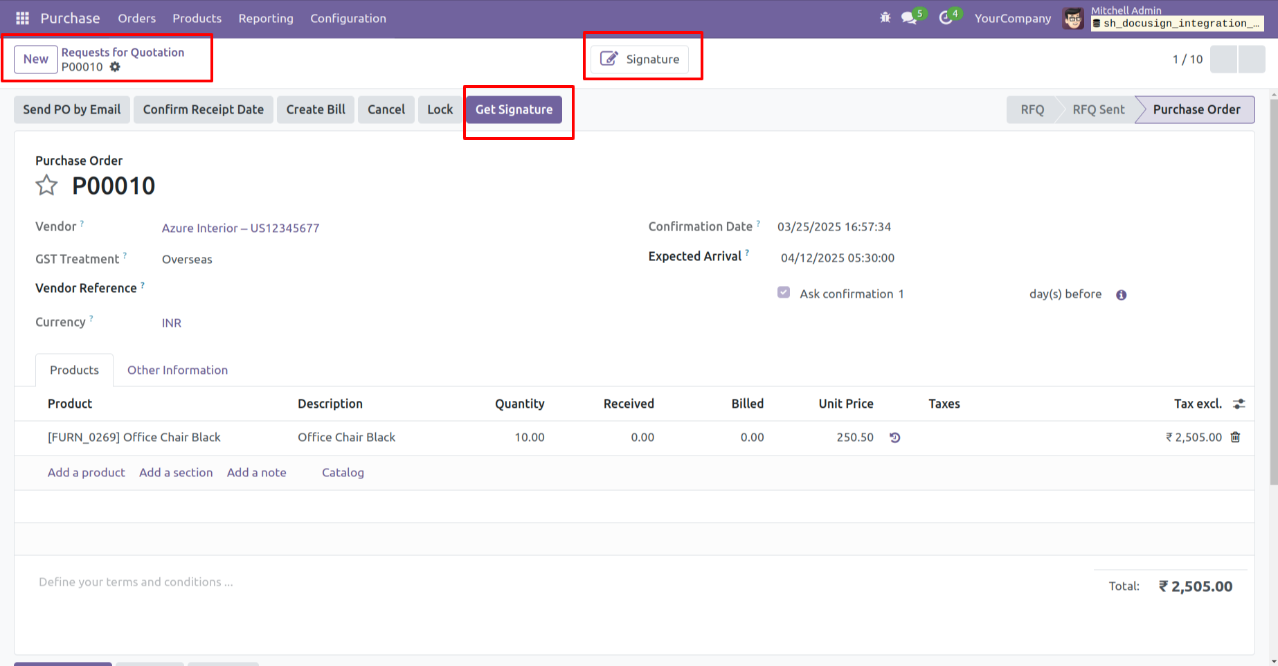 - You can generate and send signature documents directly from quotations, RFQs, and invoices.