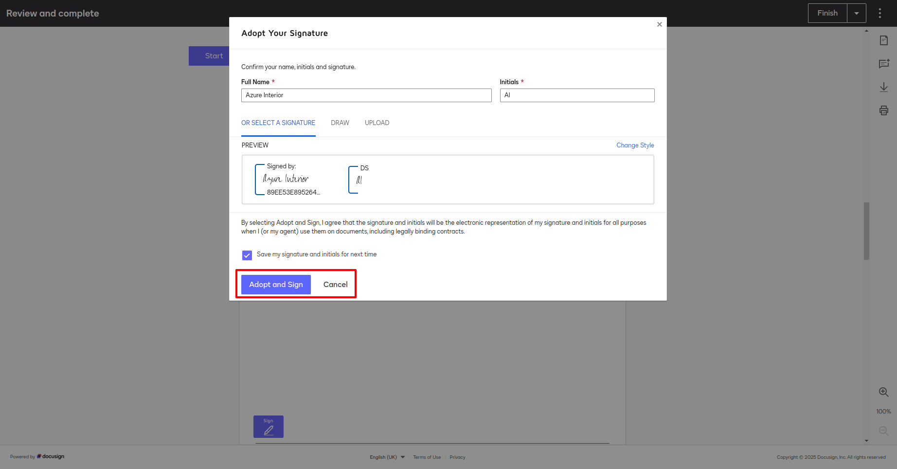 After that, this wizard will appear. Fill all the details and click on the "Adopt and Sign" button.